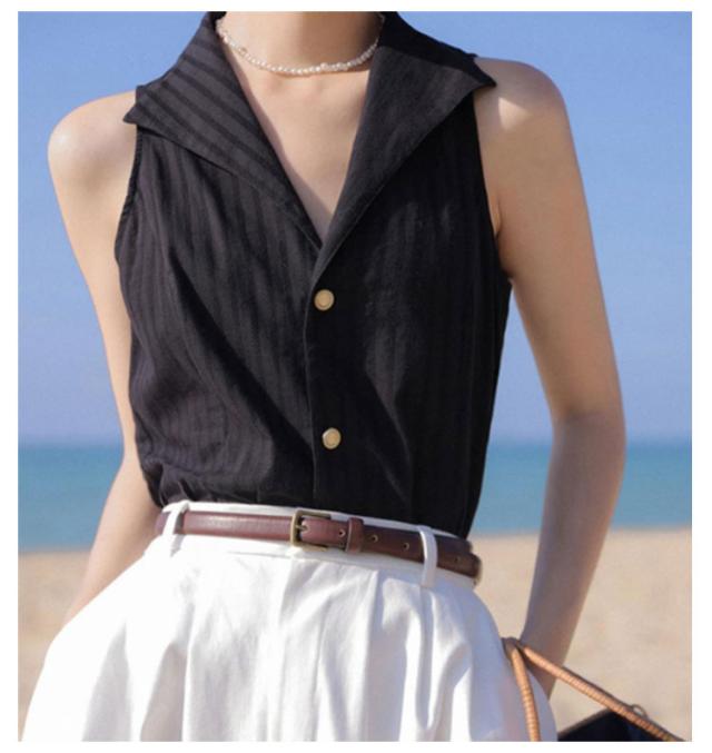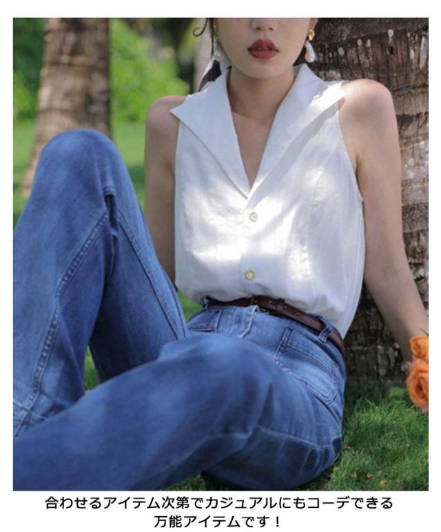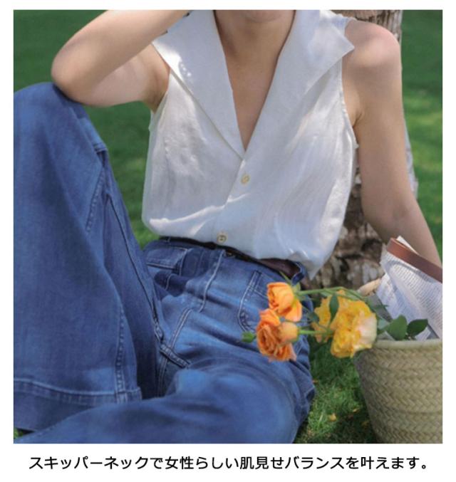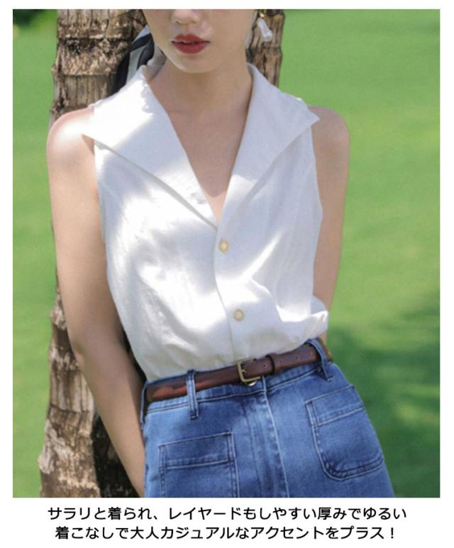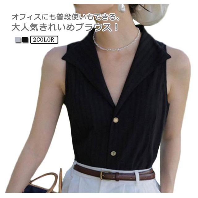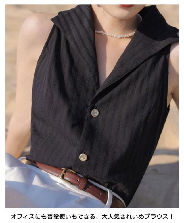 前開き シャツブラウス ゆるシャツ トップス テーラード ブラウス ストライプ ノースリーブ スリーブレス vネック タンクトップ 大人 美フォルム レディース 春 夏 フォーマル オフィス ブラウス 送料無料