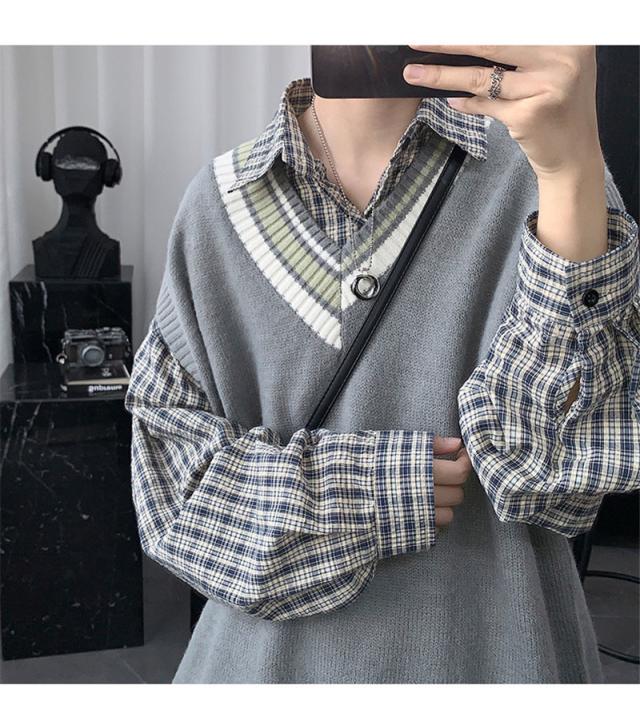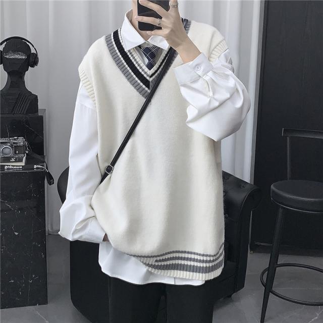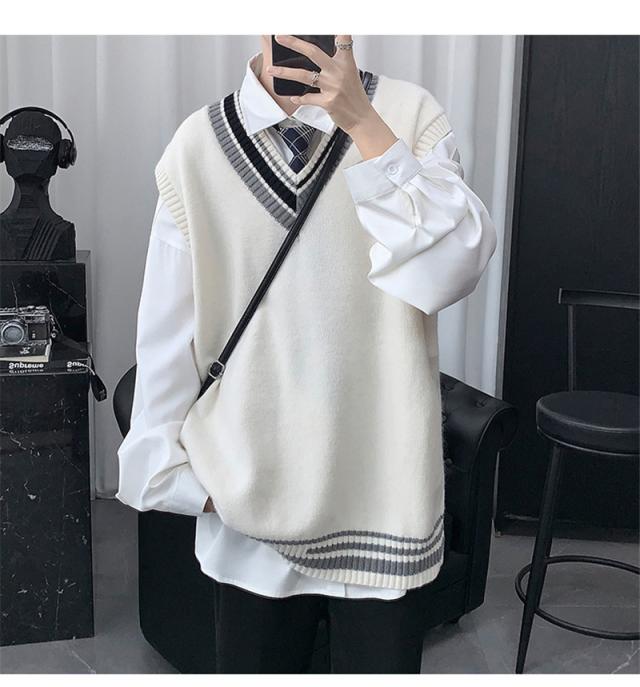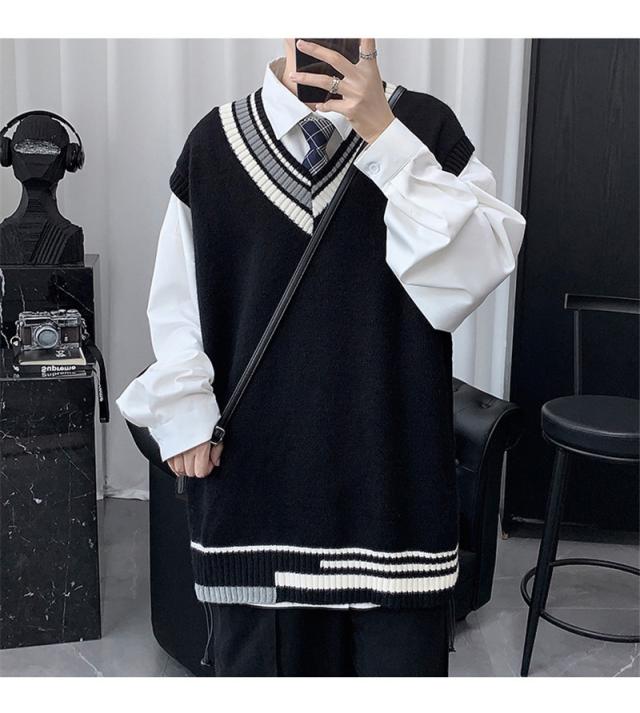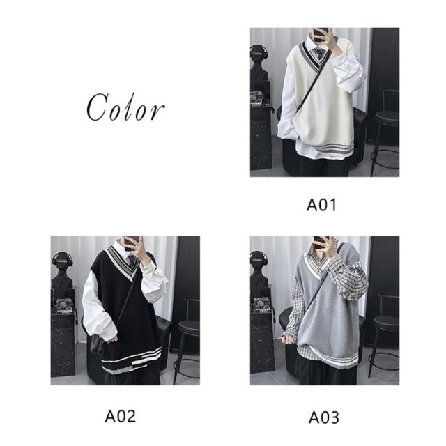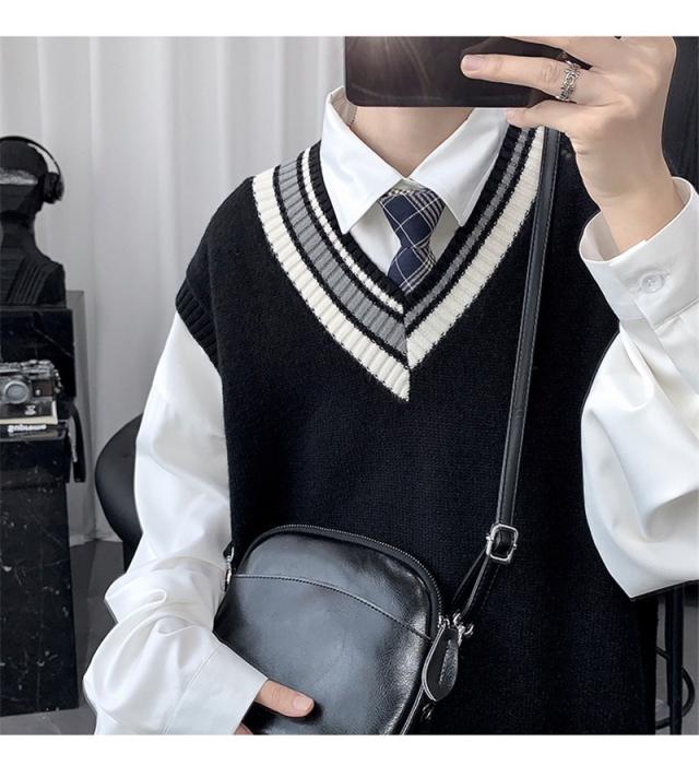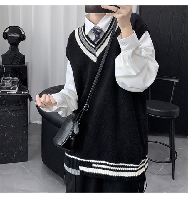 - ニットベストメンズ袖無しVネックセーター