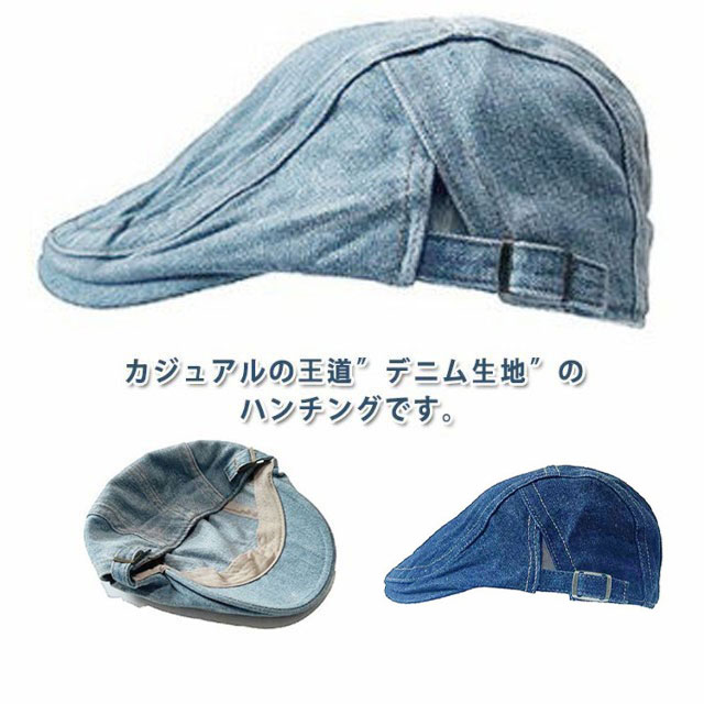 ハンチング帽子 デニム ハット メンズ レディース ヴィンテージ風 男女兼用 サイズ調節可 カジュアル アクセサリー 無地 全2色