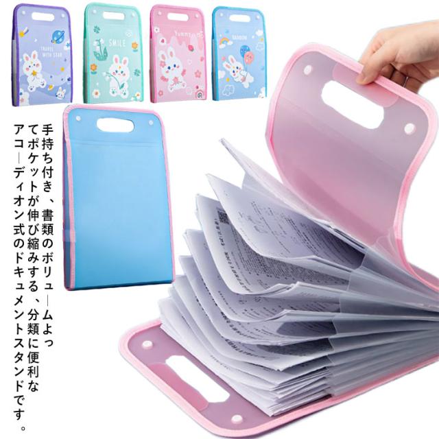ドキュメント ファイル 書類 フォルダ 手持ち付き アコーディオン式 A4 整理 フォルダー 13 ポケット 書類 ポケット 事務 収納 卓上収納 A4サイズ 分類ステッカー付き かわいい