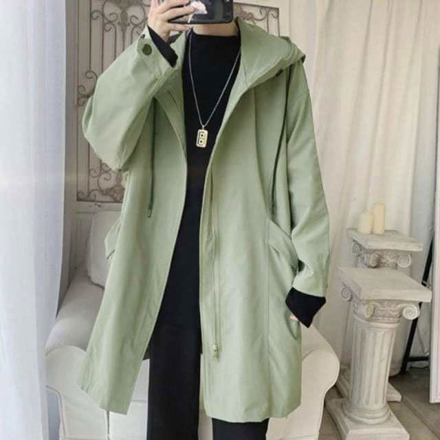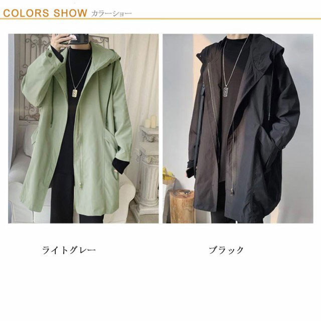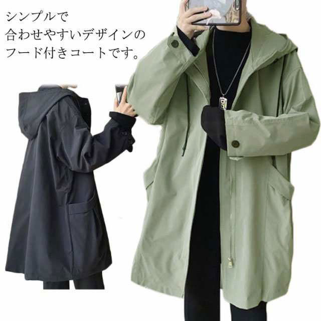 【送料無料】メンズ ステンカラーコート フード付き ハーフコート 秋物 薄手 裏地付き ゆったり ライトアウター トレンチコート オーバーサイズ ミドル丈 通勤 カジュアル 春 秋 冬 アウター シンプル 大きいサイズ