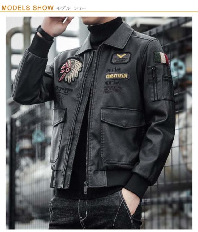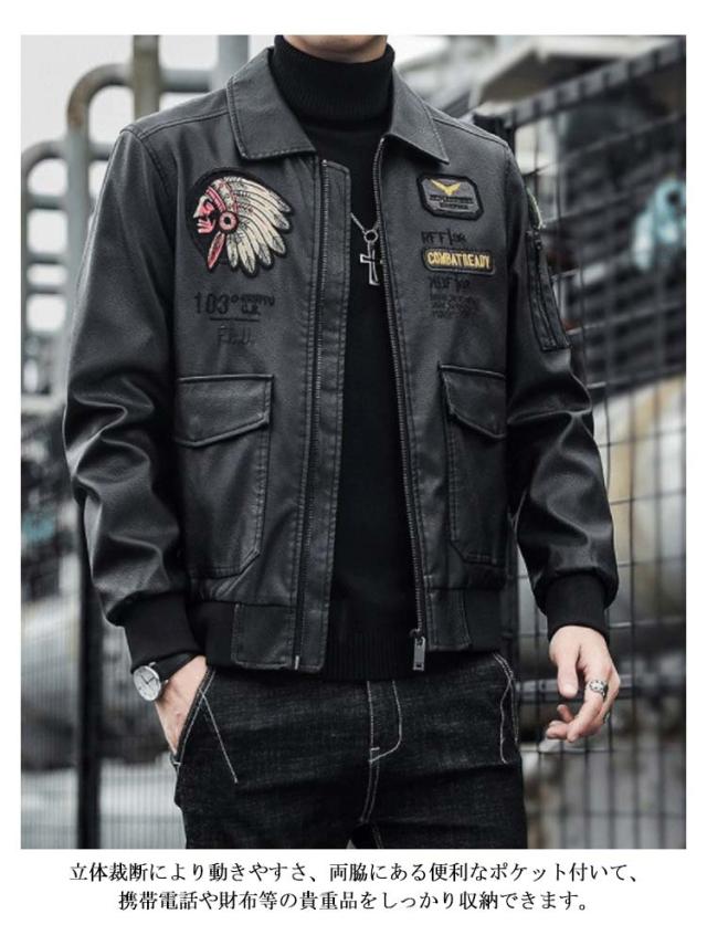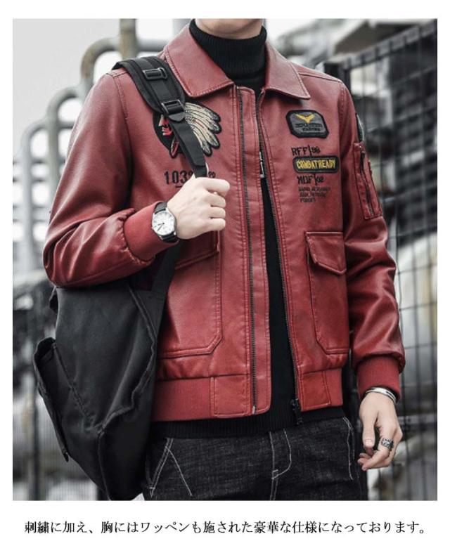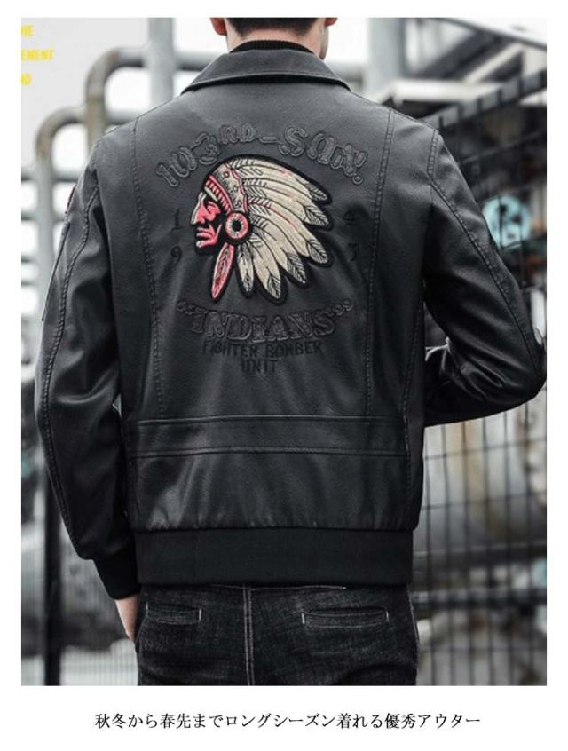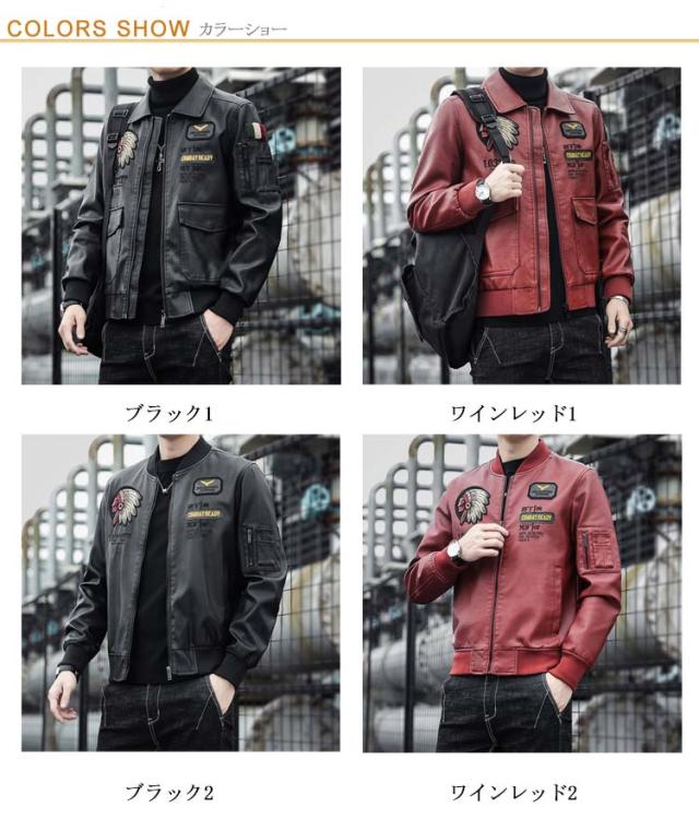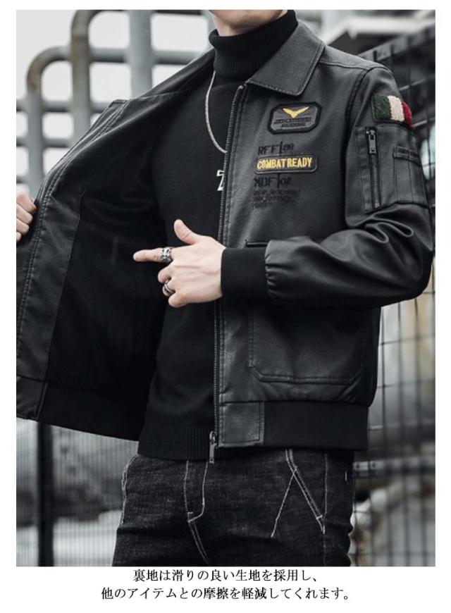 ライダースジャケット メンズ レザージャケット ノーカラーと襟付き2タイプ シングル 刺繍 裏地付き 秋物 MA-1 レザー ジャケット ブルゾン アウター 薄手 防寒 防風 防水 カジュアル 春 秋 冬 おしゃれ 【送料無料】