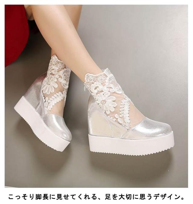 厚底 スニーカー レディース インヒールスニーカー ハイカット フラワーレース ウエッジソール 靴 シューズ インヒール ブーツ ゴシック ロリータ ゴスロリ シースルー 身長アップ 22.0-24.5cm