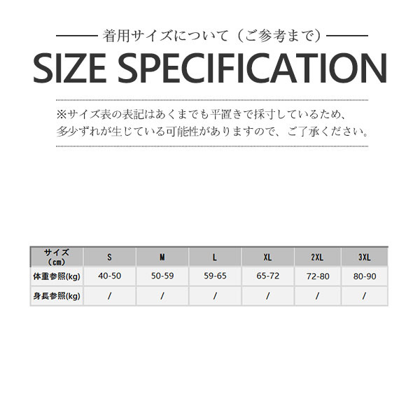 ※基本的に、XL・LL・2Lのサイズはすべて同じサイズです。