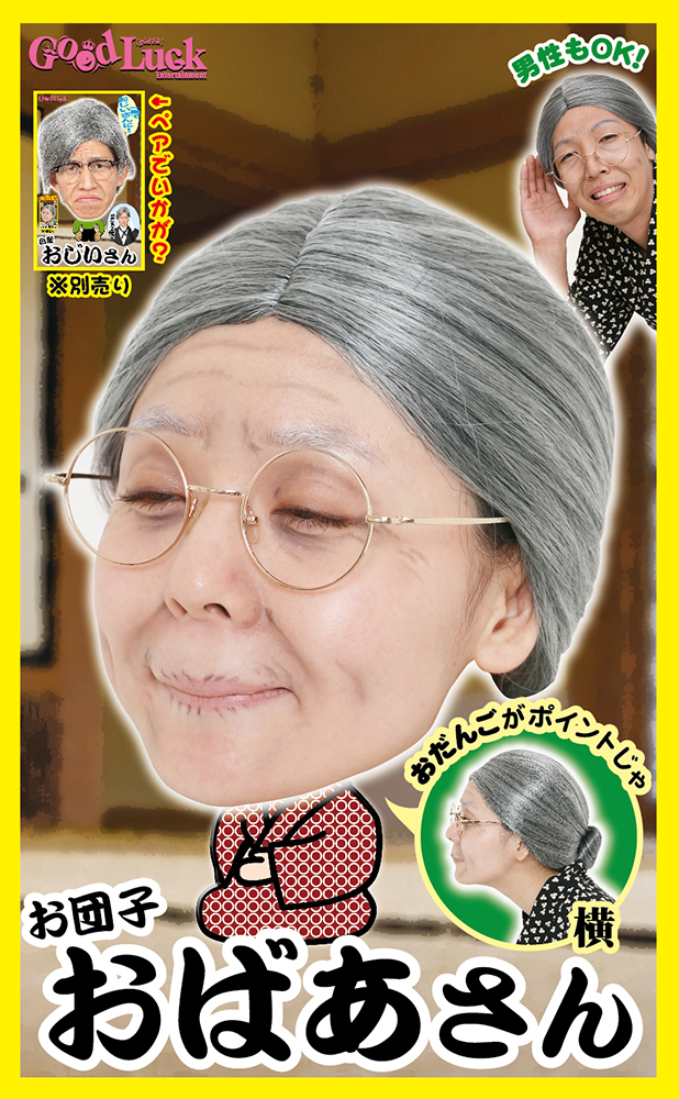 商品説明:おばあさんになりきれる、お団子結びの白髪ウィッグです。お手頃なのにリアルで面白い。宴会や演劇など、様々なシーンで幅広く使ってね。同カツランドシリーズの「白髪おじいさん」ウィッグとペアで被るのもおすすめです。