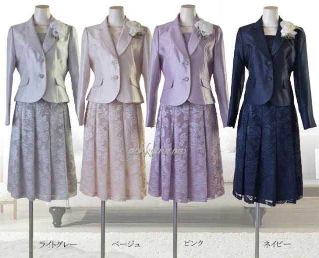 セレモニースーツ カラーフォーマルスーツ 花柄 2点セット 気品 上品 9号 11号 13号 15号 入学式 卒業式 着回し 母親 ママ スーツ 5989(mg2f4)