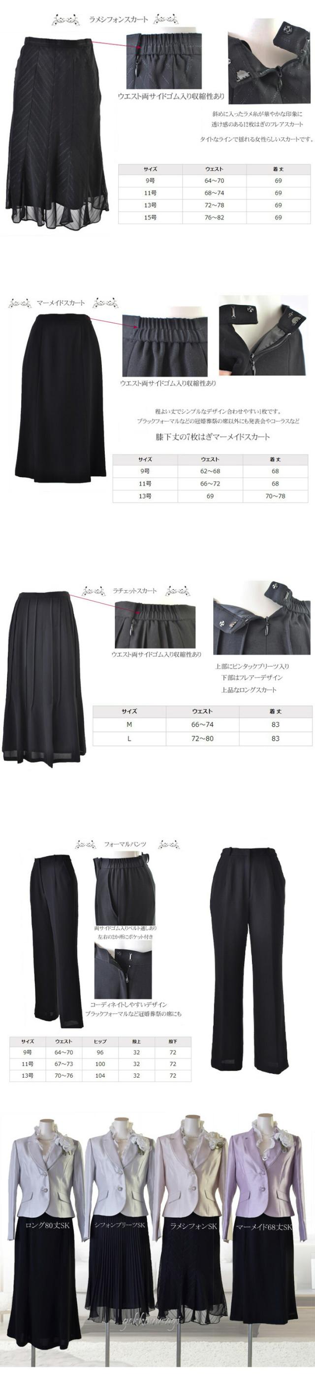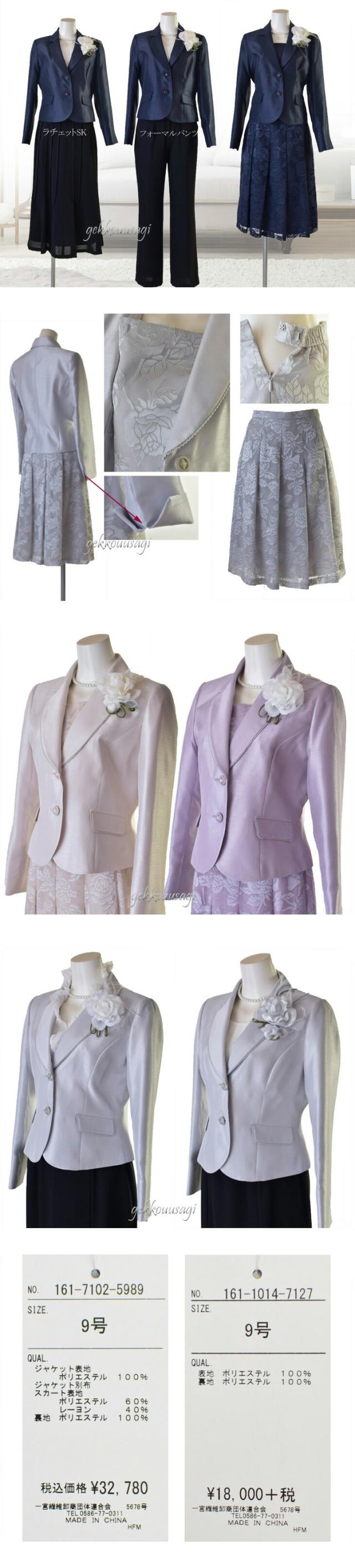 9号、11号、13号、15号サイズの上品なカラーフォーマルスーツです。