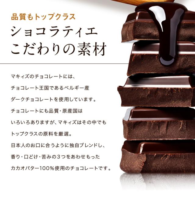 | 原材料 | チョコレート(国内製造、外国製造)、カカオニブ、ココアバター/乳化剤、香料、(一部に乳成分・大豆を含む) |