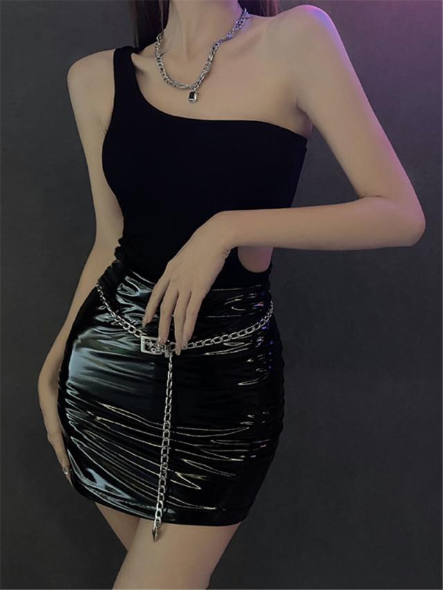 新作 レザースカート レディース ミニ丈 タイト ショート丈 ハイウエスト 着痩せ キラキラ フェイクレザー ストリート セクシー