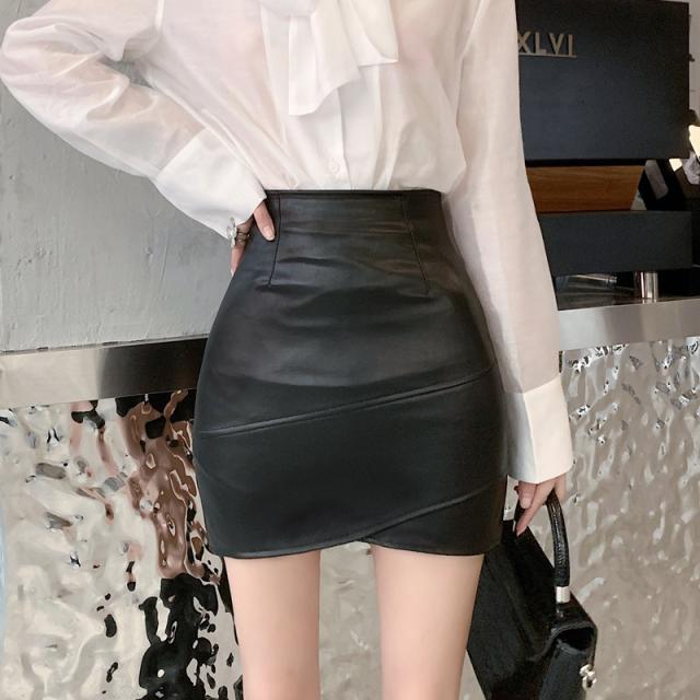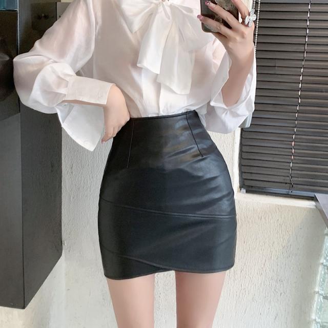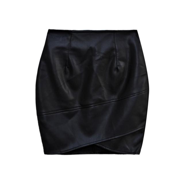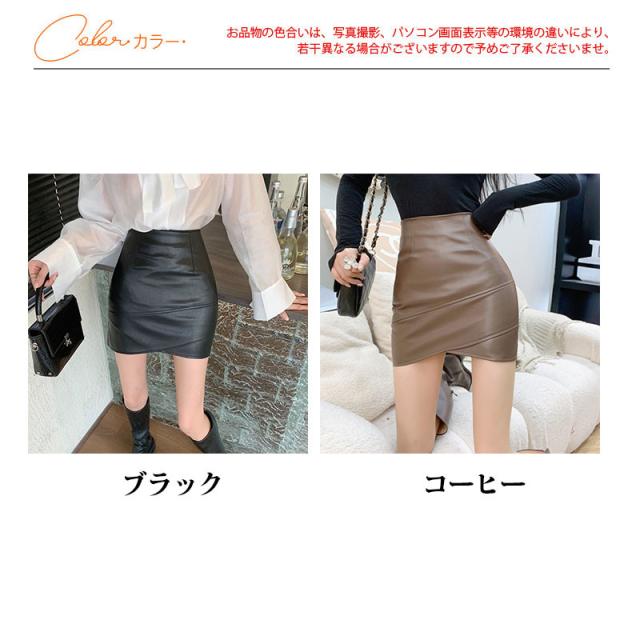 レザースカート レディース ショート丈 タイト ハイウエスト スリット 無地 着痩せ フェイクレザー オフィス 通勤 高級感 エレ