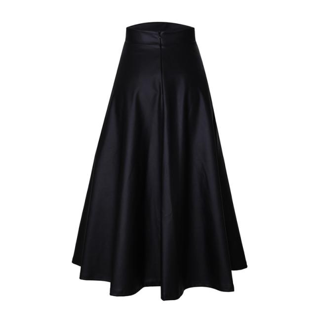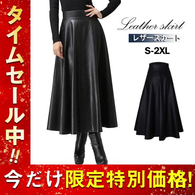 レザースカート スカート レディース フェイクレザー フレア ロングスカート ハイウエスト Aライン フレア PU ブラック ゆっ