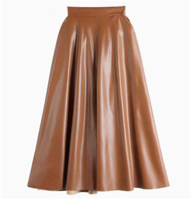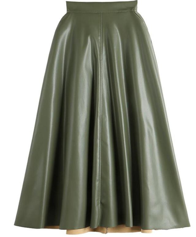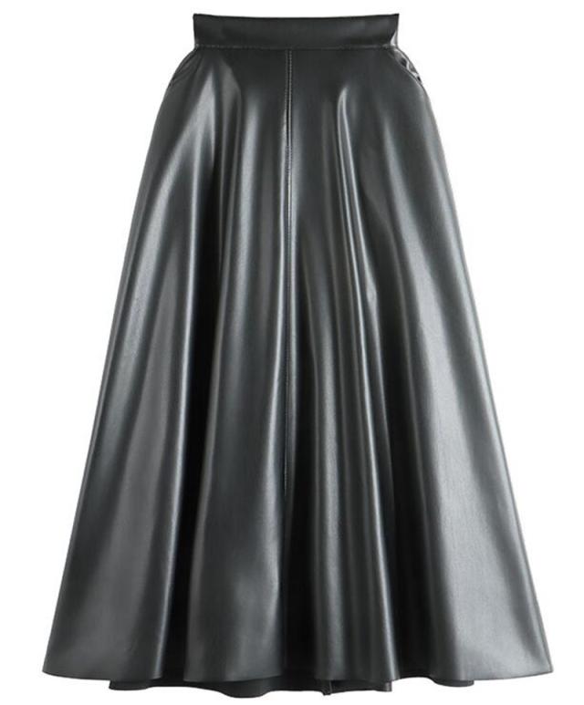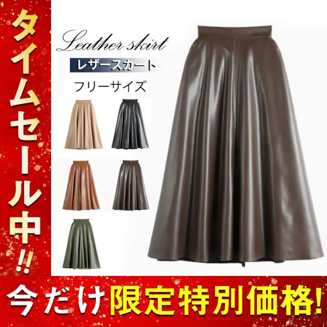 レザースカート レディース ロング丈 フェイクレザー ハイウエスト ヴィンテージ フレア Aライン ファスナー 秋 冬 着痩せ 通