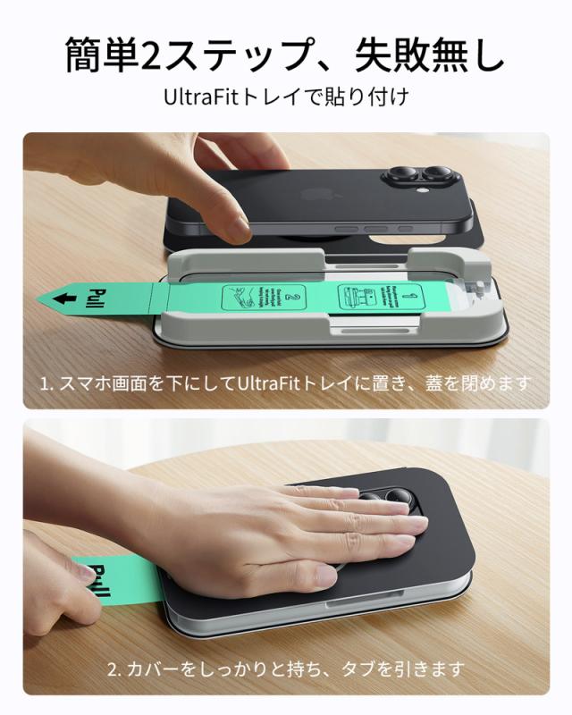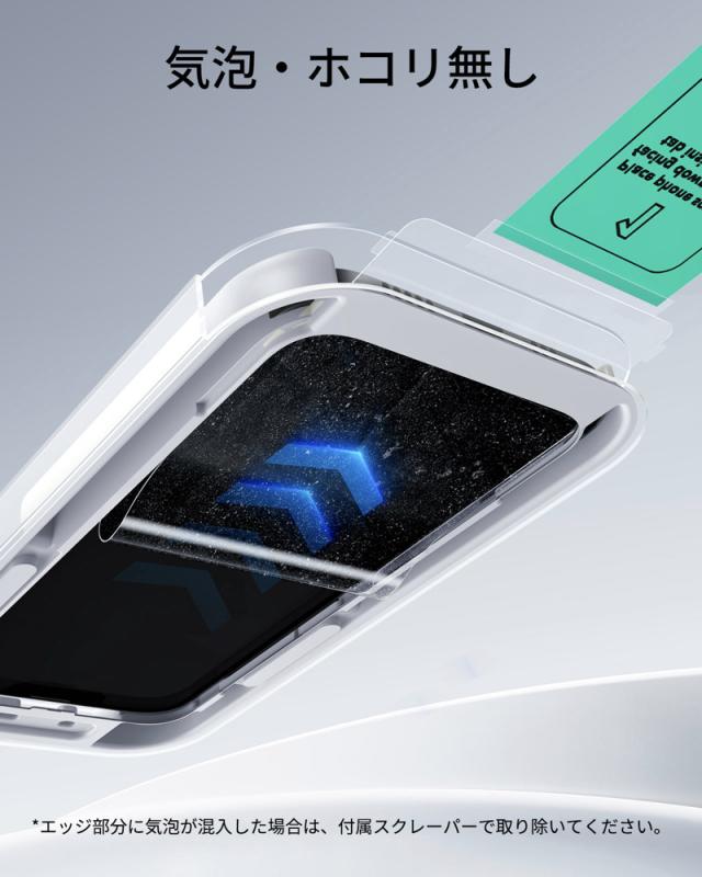 | 保護フィルム | 【UltraFitで瞬間貼り付け】 スクリーン保護フィルムの専用貼り付けツールであるUltraFitトレイとクリーニングキットが付属しており、気泡のない素早い保護フィルム貼付けが行えます。説明書に目を通してから、貼り付けツールをご利用下さい。 【気泡・ホコリ防止】 高度なマイクロナノ粘着技術により、透明な画面の品質を維持しながら、気泡やほこりのない完璧貼付けを可能にします。 【気泡・ほこりの無い貼り付け】 高度なマイクロ粘着技術によって、オリジナルの高透過度スクリーン品質を維持しながら、気泡・ほこりが混入せず綺麗にフィットします。 【米軍MIL規格の保護力】 最大15kgの耐衝撃性を備える超タフな強化ガラスは、落下、衝撃、傷に耐え抜き、あらゆる日常使用シーンから画面を守り抜きます。 【梱包内容】 ESR Armoriteスクリーン保護フィルム(2枚)、UltraFitトレイ、クリーニングキット、マニュアル。 |