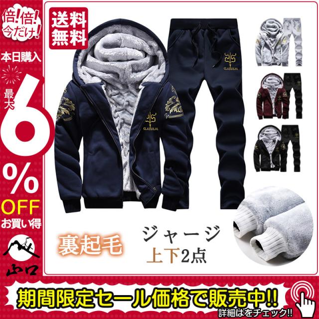 ジャージ メンズ 上下2点 セットアップ 長袖 パーカー フード付き カジュアル 裏起毛 スウェット前開け 秋冬 保温防寒 スポー