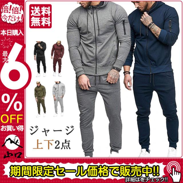 ジャージ メンズ 上下2点 セットアップ 長袖 パーカー フード付き カジュアル 前開け スウェットセット 秋冬 トレーニング ス
