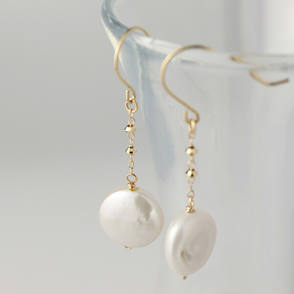 Irise coffret K10 ゴールド パール 真珠 バロックパール コインパール チェーン ピアス 2P 両耳用 レディース 10金 10k フック ドロップ 揺れる