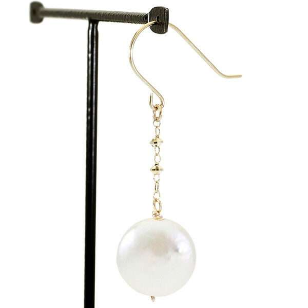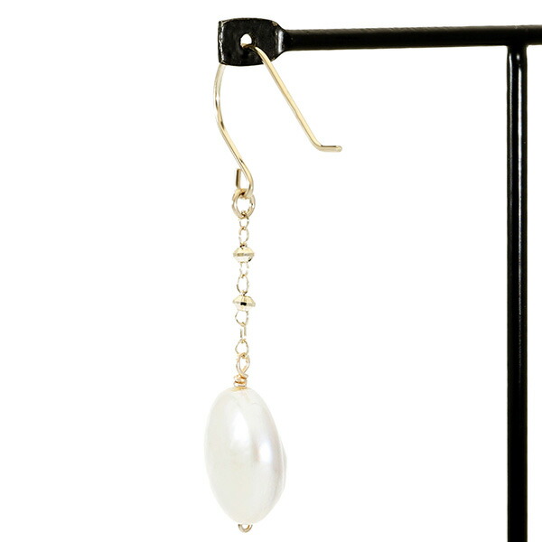 K10 ゴールド パール 真珠 バロックパール コインパール チェーン ピアス(2P/両耳用)