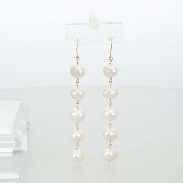 K10 ゴールド パール 真珠 バロックパール 5連 ピアス (2P/両耳用)