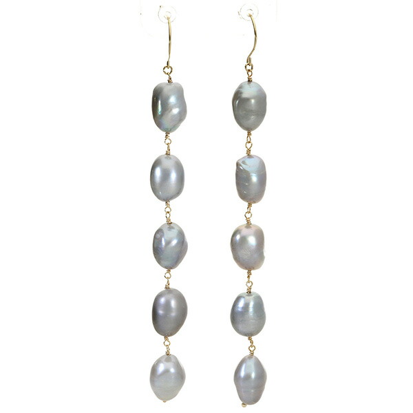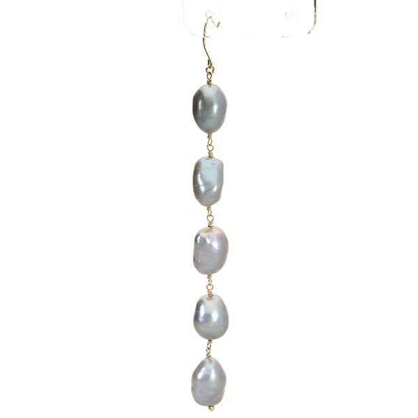 K10 ゴールド パール 真珠 バロックパール 5連 グレー ピアス (2P/両耳用)