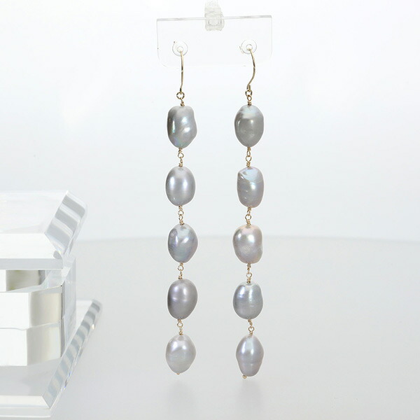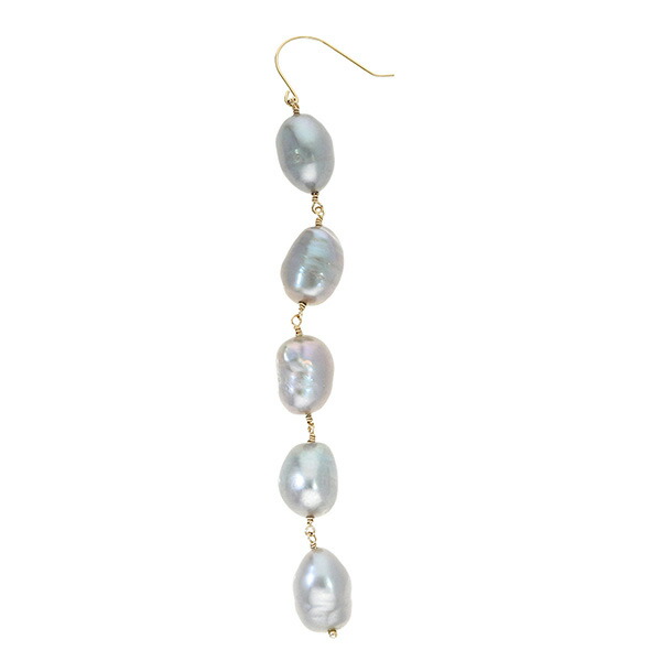 Irise coffret K10 ゴールド パール 真珠 バロックパール 5連 グレー ピアス 2P 両耳用 レディース 10金 10k フック ドロップ 揺れる ぶら下がり 耳飾り