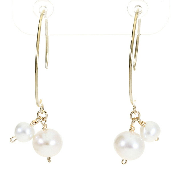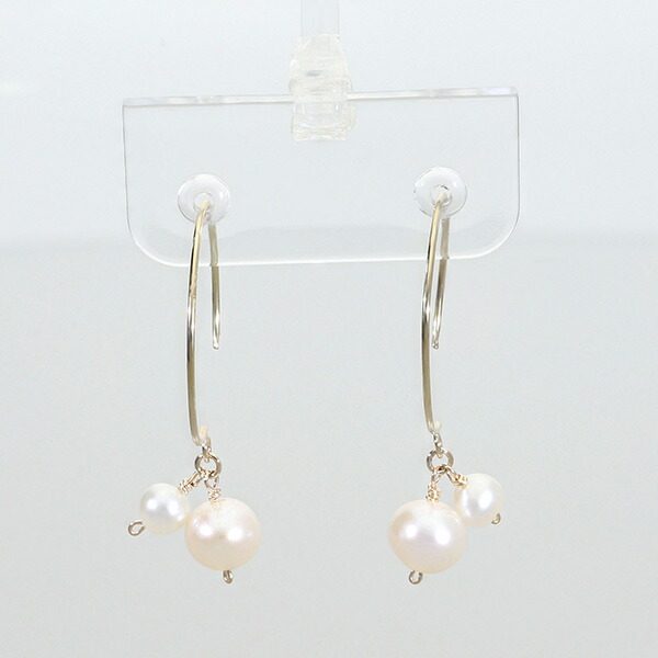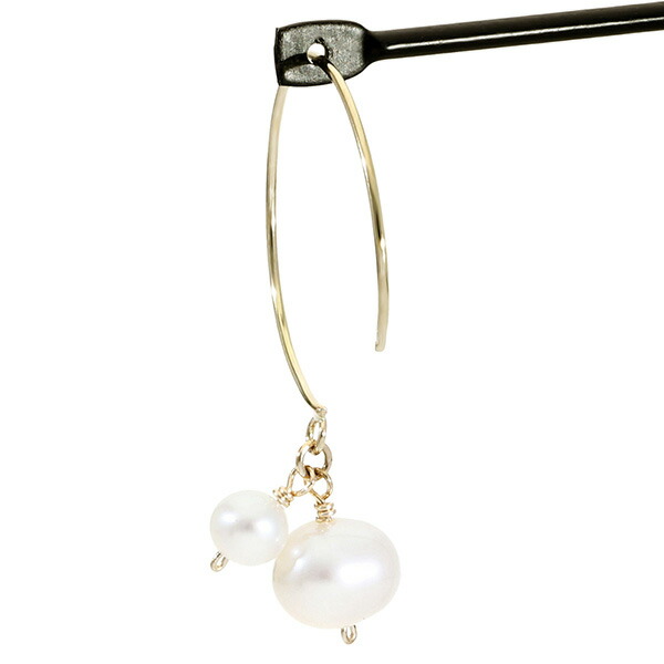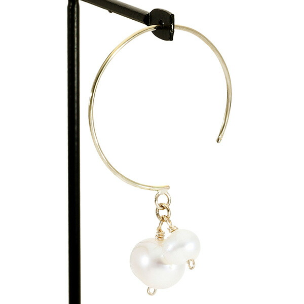 K10 ゴールド パール 真珠 バロックパール フープ ピアス (2P/両耳用)