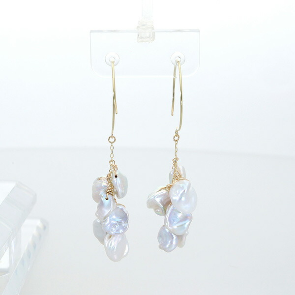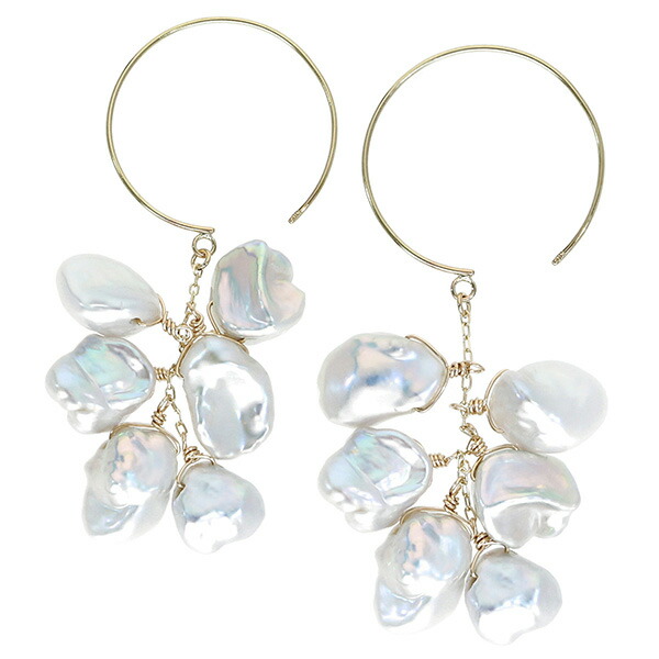 Irise coffret K10 ゴールド パール 真珠 バロックパール グレー ドロップ フープ ピアス 2P 両耳用 レディース 10金 10k 揺れる ぶら下がり リング