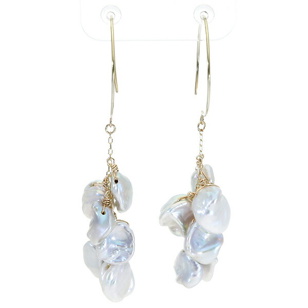 K10 ゴールド パール 真珠 バロックパール グレー ドロップ フープ ピアス (2P/両耳用)