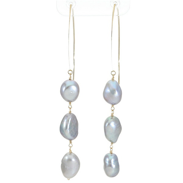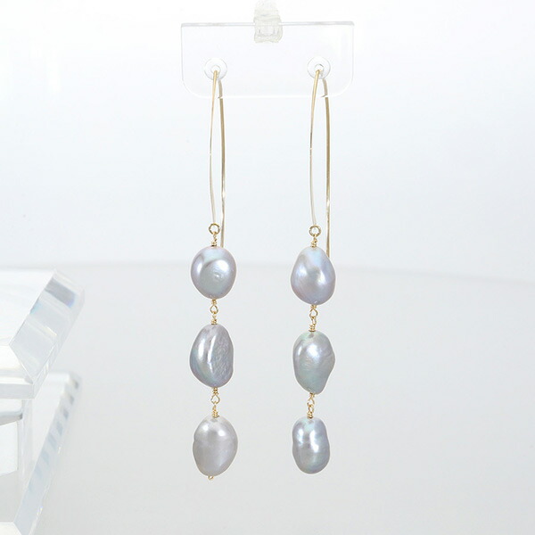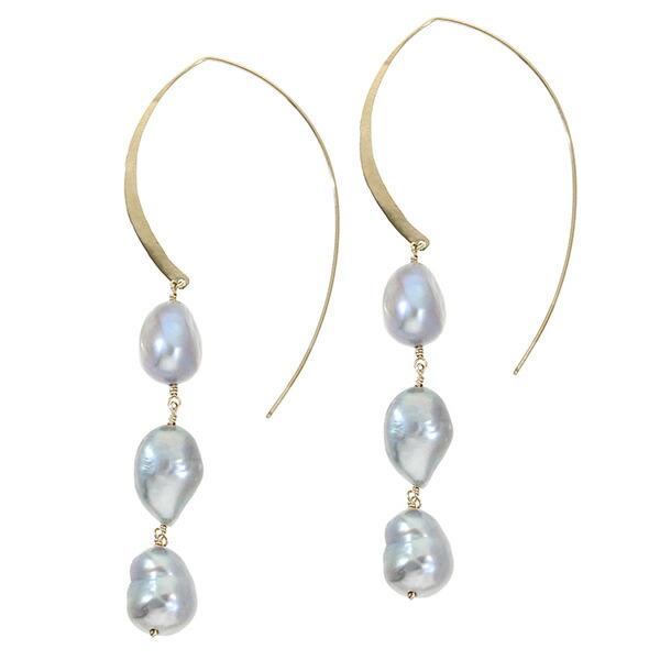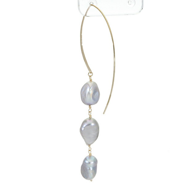 Irise coffret K10 ゴールド パール 真珠 バロックパール グレー 3連 ピアス 2P 両耳用 レディース 10金 10k フック ドロップ 揺れる ぶら下がり 耳飾り