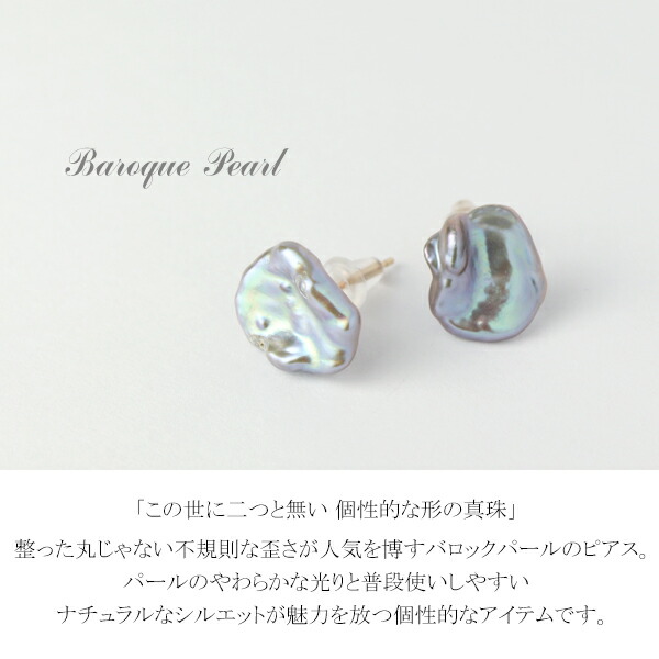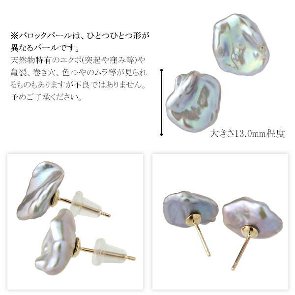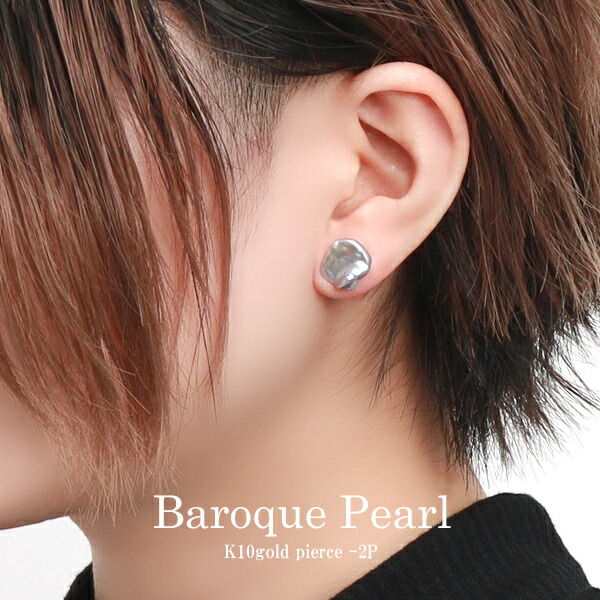 K10ゴールド メタリック バロックパール スタッドピアス (2P/両耳用)