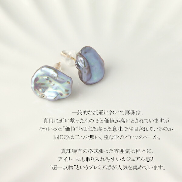 Irise coffret 淡水真珠 花びら メタリック バロックパール スタッドピアス 2P 両耳用 K10 ゴールド 10金 10K 淡水パール 真珠 パール グレー シルバー