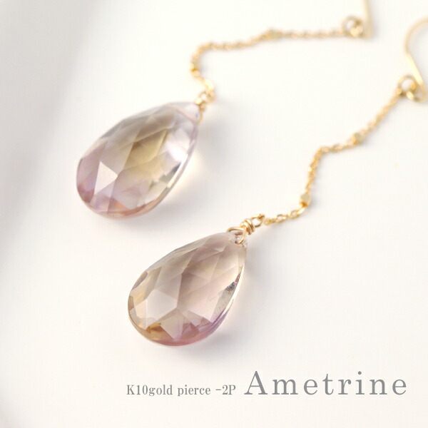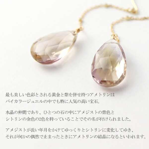 Irise coffret 天然 アメトリン ドロップ フックピアス 2P 両耳用 K10 ゴールド 10金 10K アメジスト シトリン 2月 11月 誕生石 天然石 ロングピアス