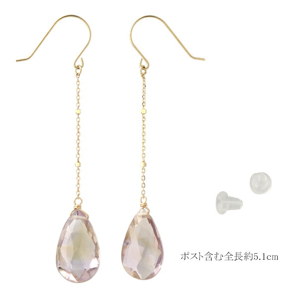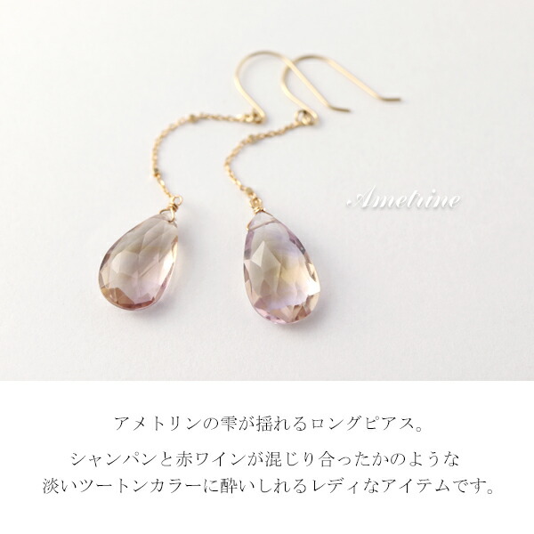 K10ゴールド アメトリン ドロップ フック ロングピアス (2P/両耳用)