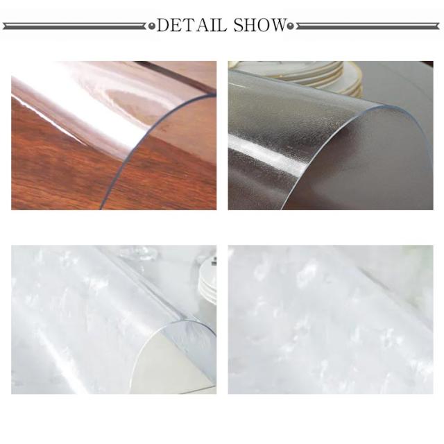 | 新品透明PVCテーブルクロス、シンプルで明るいお部屋を彩ります! 簡単に洗浄。無色透明で、木目や塗装色などの、家具本来の美しさを損なうことなくご使用いただけます。 耐久性に優れていて、 ホテル、レストランにおけるハードユースにも安心して使用される! お子様がいる家庭は、食べこぼしや汁物こぼれも安心! 透明だからお好きな色のテーブルクロスを下に敷いて合わせてもお洒落で簡単に洗浄、普段のお手入れは簡単な拭き取りで十分です。 水と油の汚れ防止、重い圧力に抵抗し、寒さと熱、酸とアルカリ。テーブルの天板保護に最適なマットです! | |