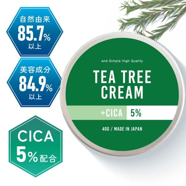 | 商品説明の箇条書き | オーガニックのティートリーをたっぷり使った自然由来88.5%以上のティートリークリーム ニキビ肌や肌荒れのお肌を滑らかにし、健やかに保ちます。 CICA×ティーツリーの新しい発想 2つの肌荒れ対策成分を配合 CICA 皮脂バランスを整える、皮膚をすこやかに保つ ティートリー 大人ニキビにアプローチ、肌荒れを防ぐ その他13種類の美容成分配合で保湿力アップ! (ホホバオイル、アーモンドオイル、セサミオイル、ミツロウ、ハマメリスエキス、ハトムギエキス、ローズマリーエキス、コンニャク根エキス)ラベンダー×ティートリーの香りで爽やかかつ少しフローラルな華やかさのある香り。 |