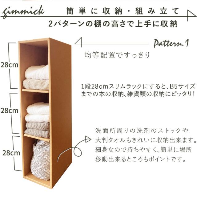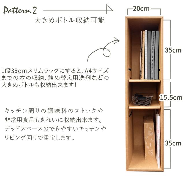 隙間 収納 すきまラック すき間 スリム 収納ボックス 幅23 棚 ダンボール 段ボール 収納 家具 段ボール家具 ダンボール家具 軽い ラック 強化 カラーボックス インナーボックス 洗面所 キッチン 台所 ブラウン