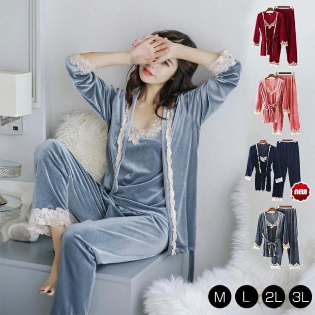 レディース パジャマ セット パジャマ レディース3点セット パジャマ セット 大きいサイズ 秋 冬 前開き かわいい 長袖 ルームウェア 暖かい レディース 寝巻き カーディガン キャミソール ベロア スウェット レース ロング 寝間着 ナイト ウェア 厚手
