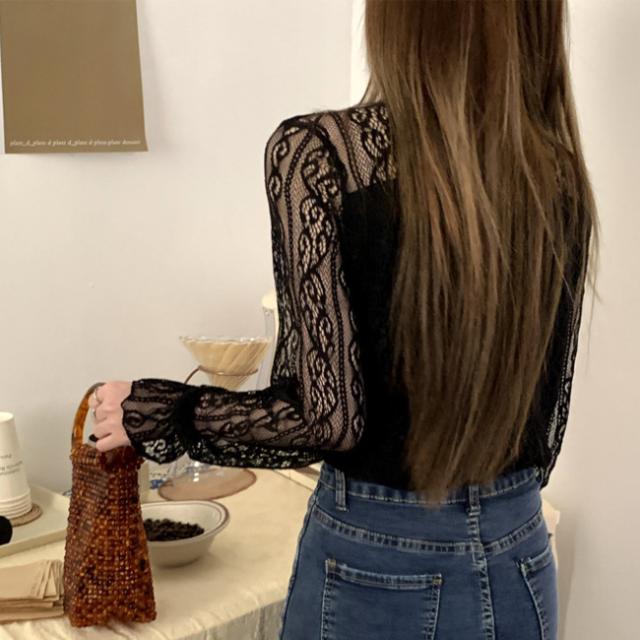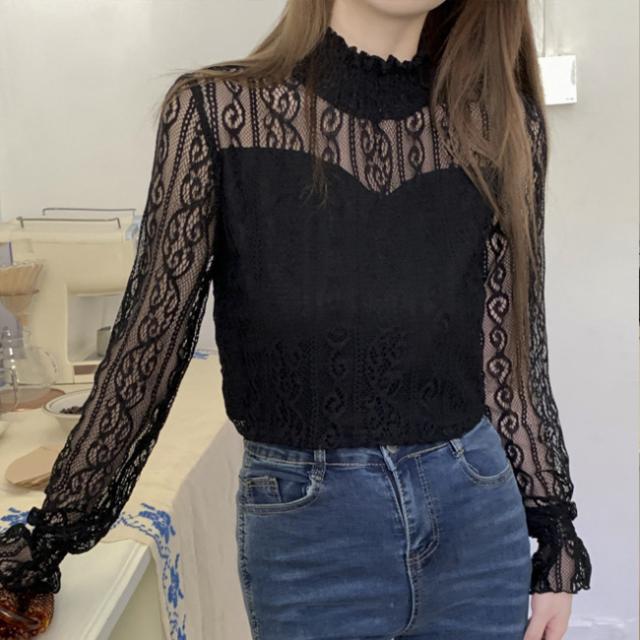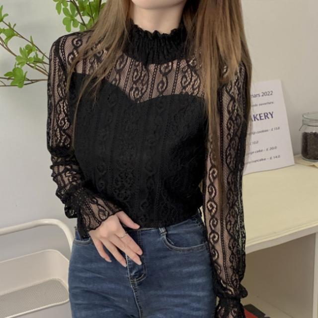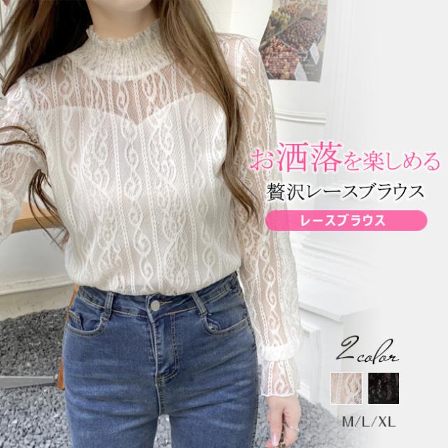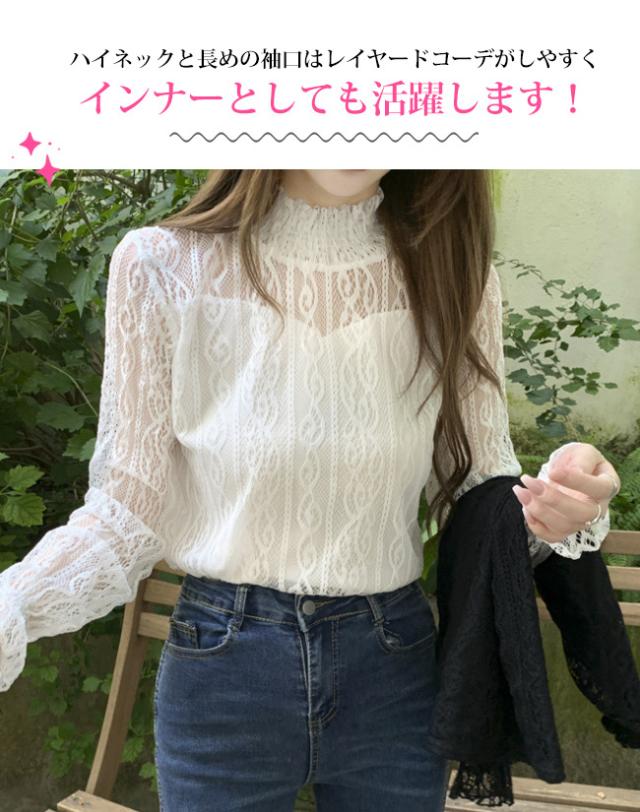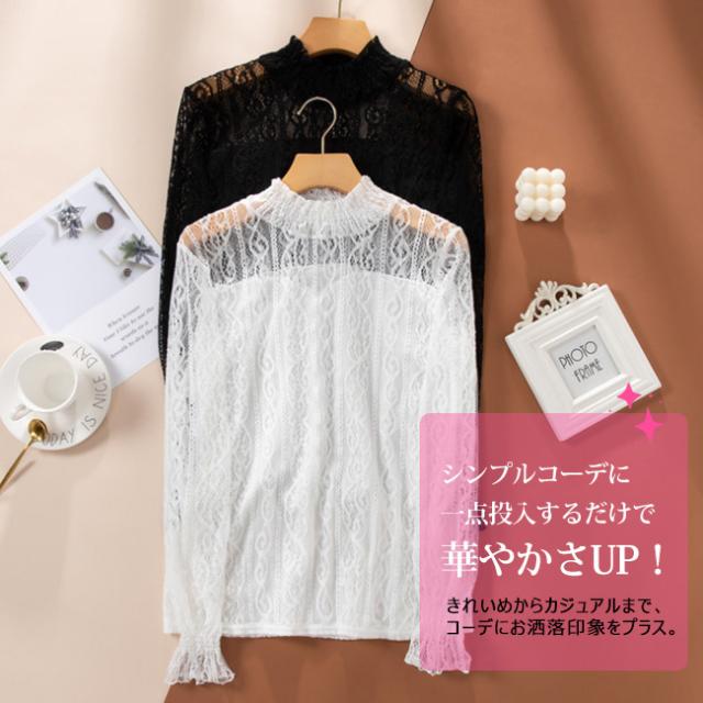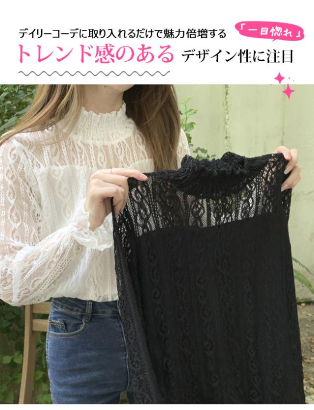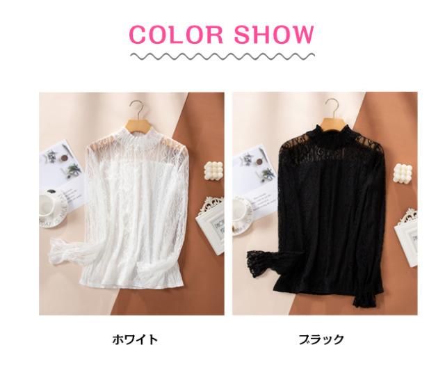 春新作 シアートップス ブラウス レース ハイネック シャツ カットソー レディース ファッション 長袖 トップス 立ち襟 セクシー インナー 上品 コーデ 入学式 入園式