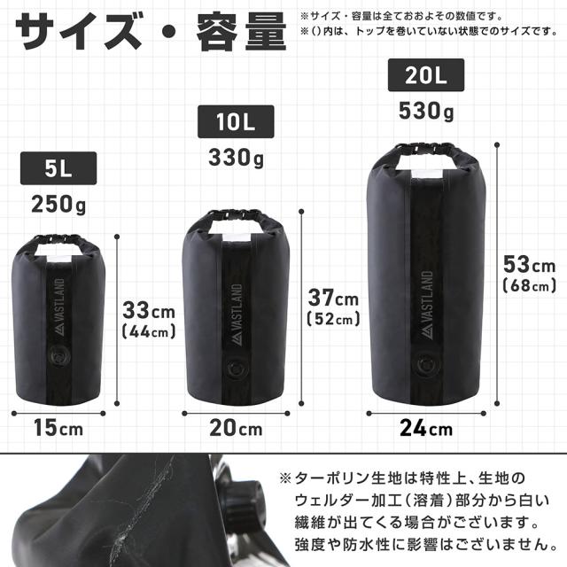 VASTLAND ドライバッグ 防水バッグ 20L IPX6 エアバルブ ショルダーベルト付き