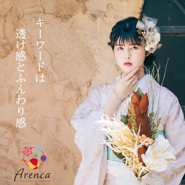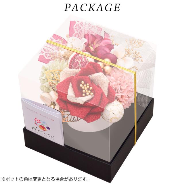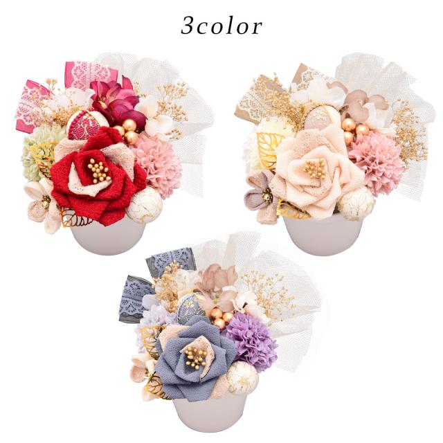 【Arenca】髪飾り 成人式 花髪飾り Uピン 16点セット フラワーポット入り インテリア パッケージ 選べる 3色 「シャルロット」 姫可愛い ヨーロピアン レッド ゴールド グレー くすみカラー 振袖用 お花飾り プリザーブドフラワー 成人式 卒業式 結婚式 着物 日本製