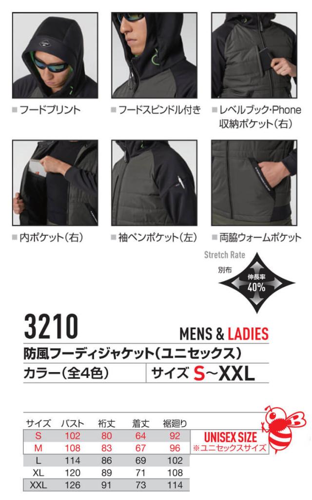[即日発送]防寒服 バートル BURTLE サーモクラフト 防風フーディジャケット(単品) 3210 THERMOCRAFT サイズS〜XL