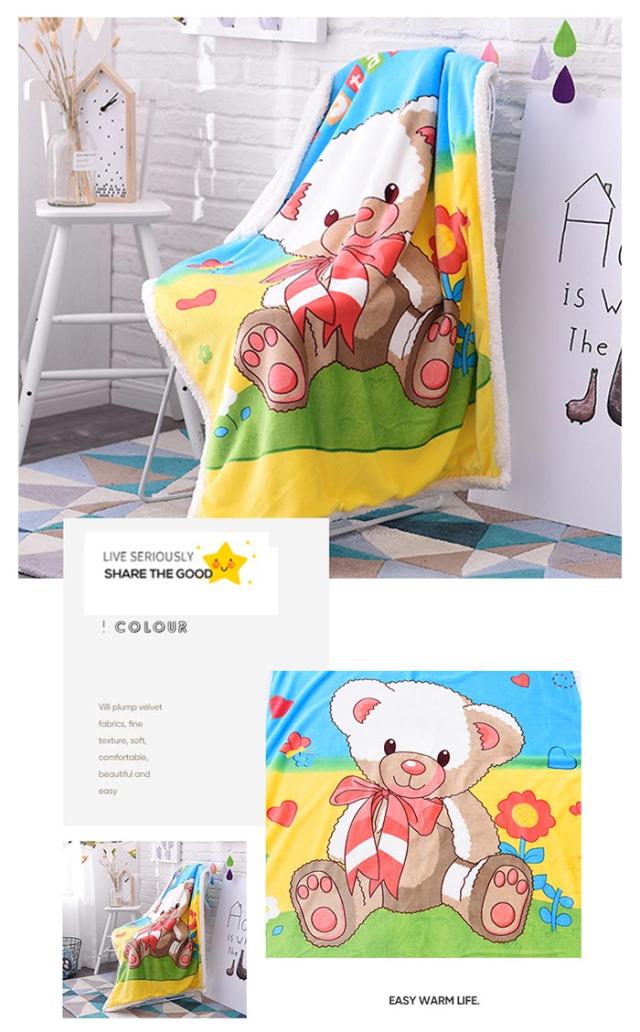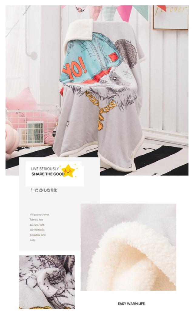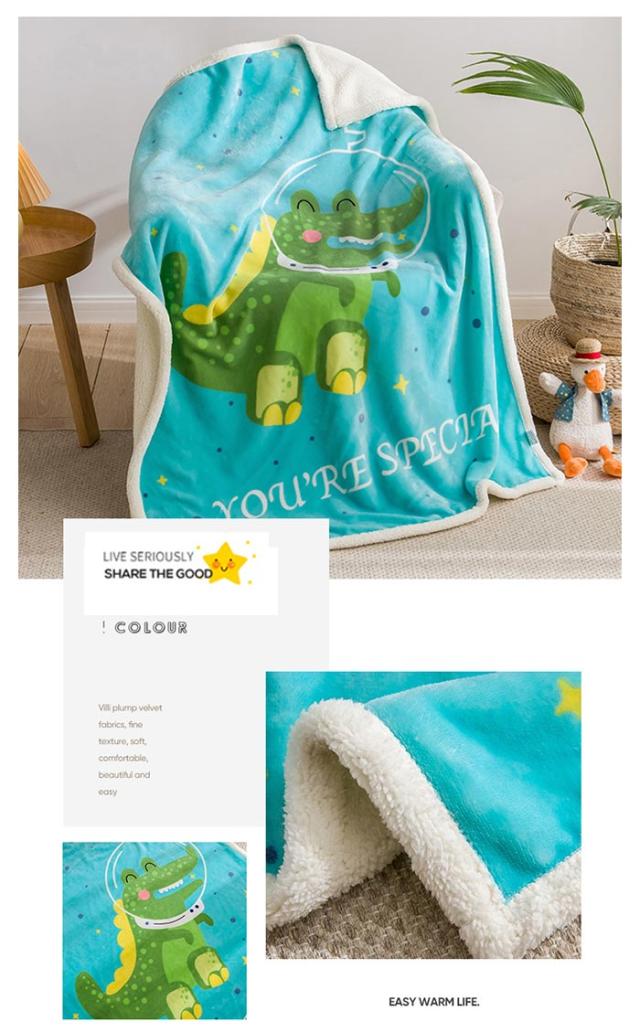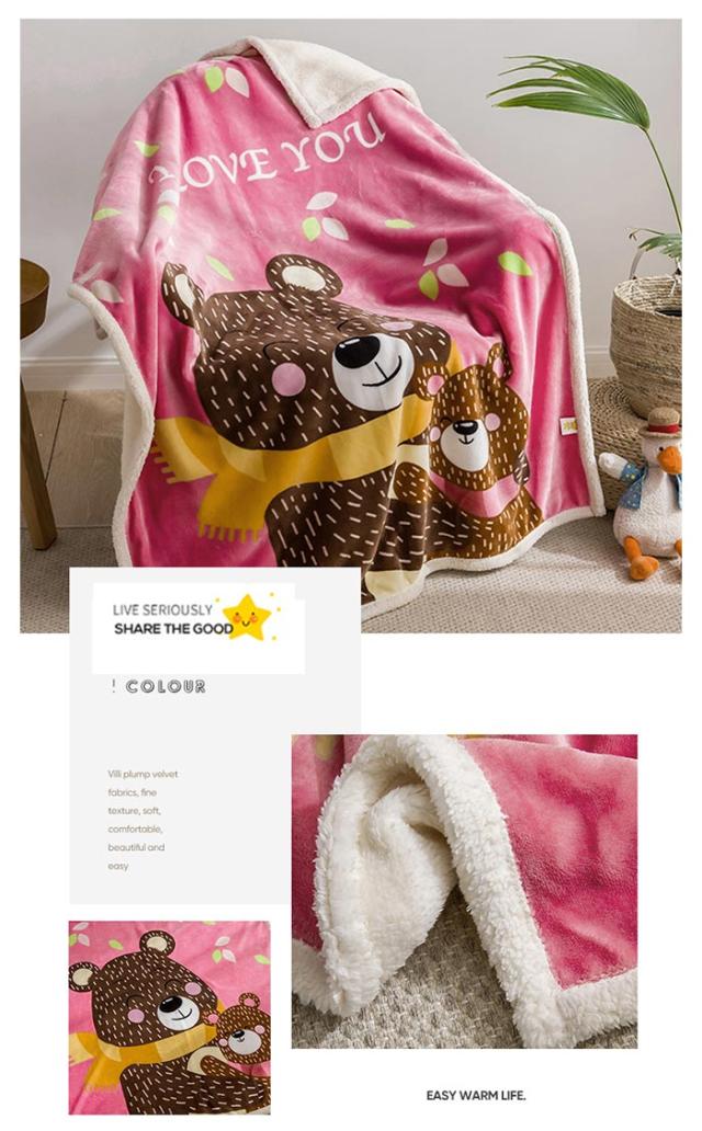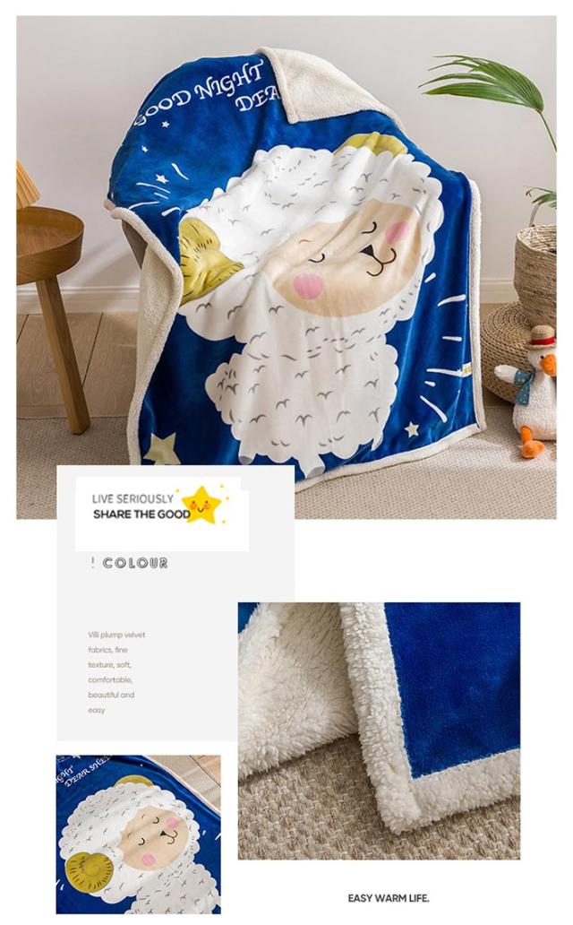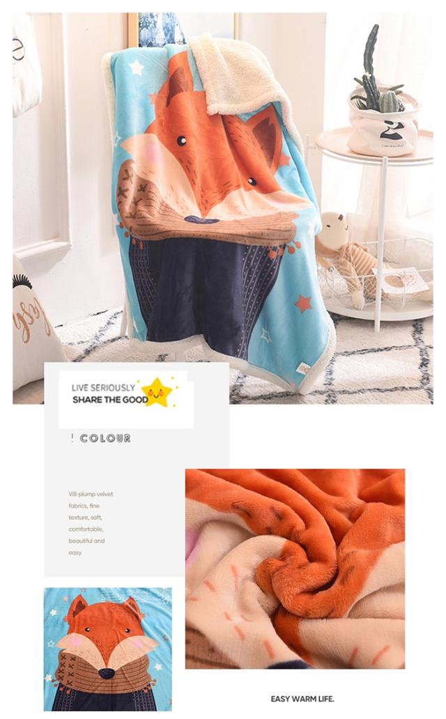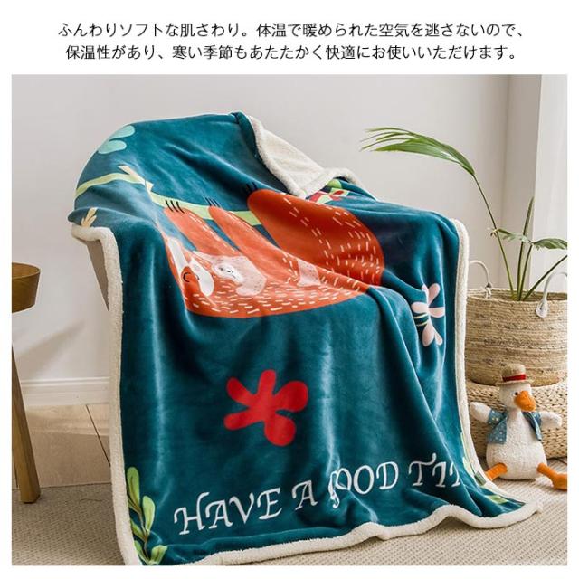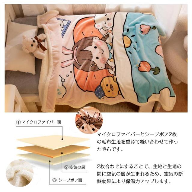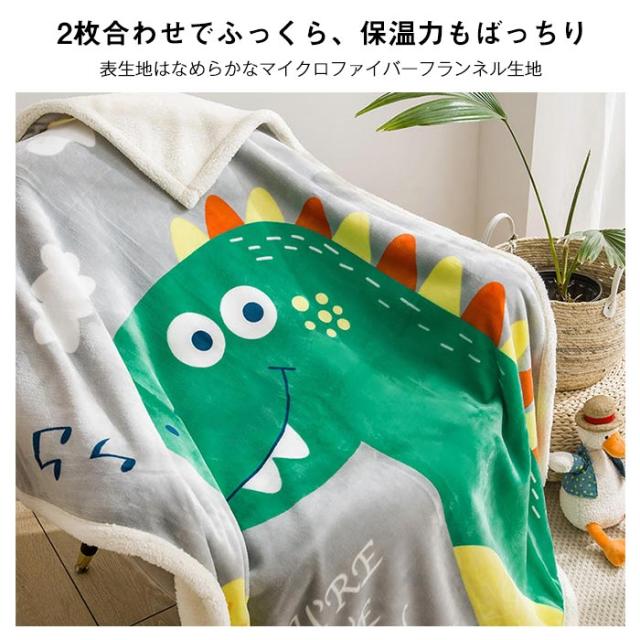 2枚合わせ毛布 ブランケット シープボア 可愛い柄 子供 キッズ 毛布 もこもこ 裏ボア フランネル もうふ あったか 洗える ひざかけ お昼寝ケット ハーフケット 100×140cm 冷房対策 秋 冬