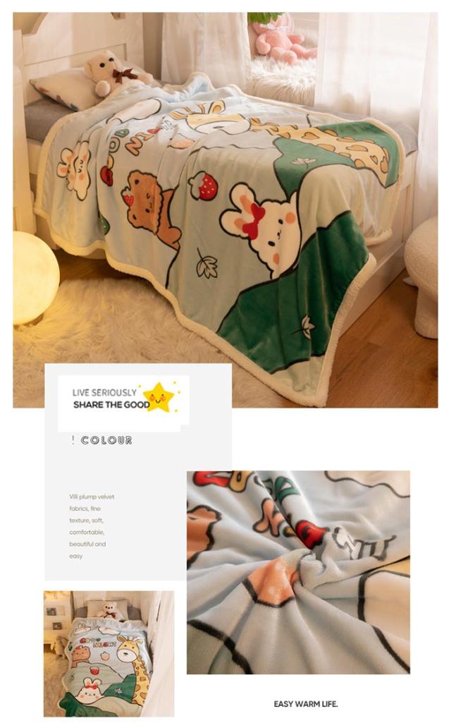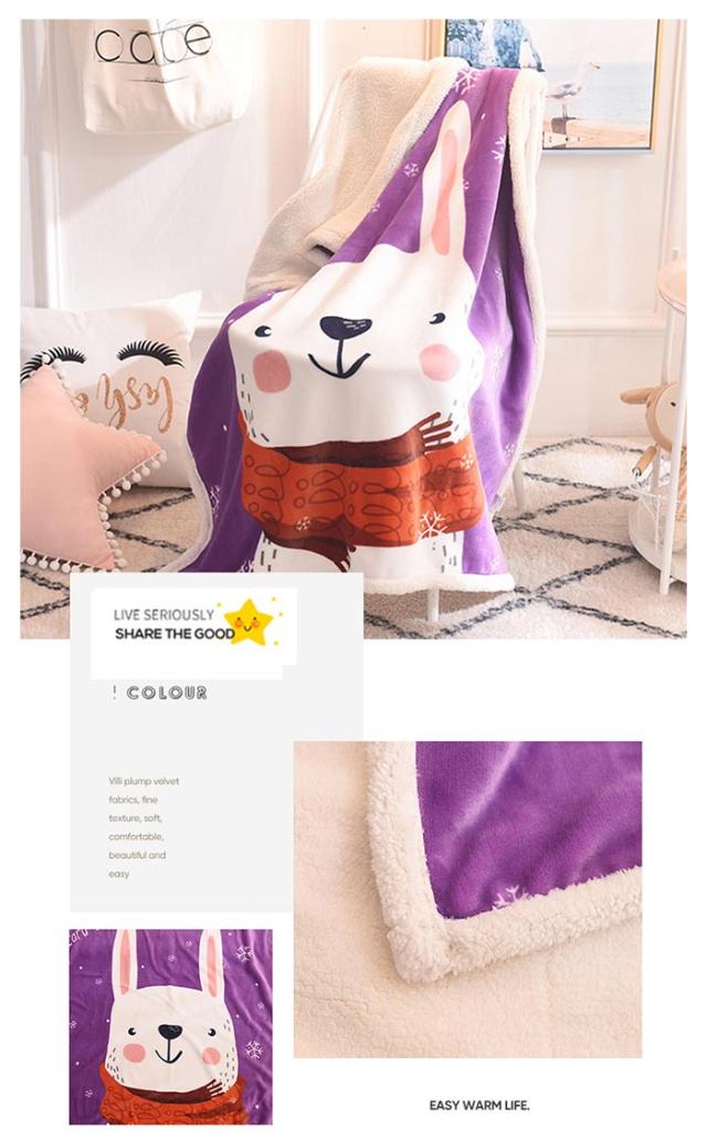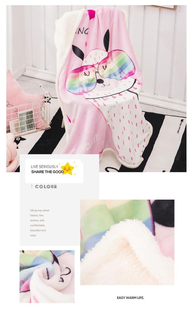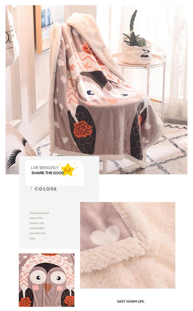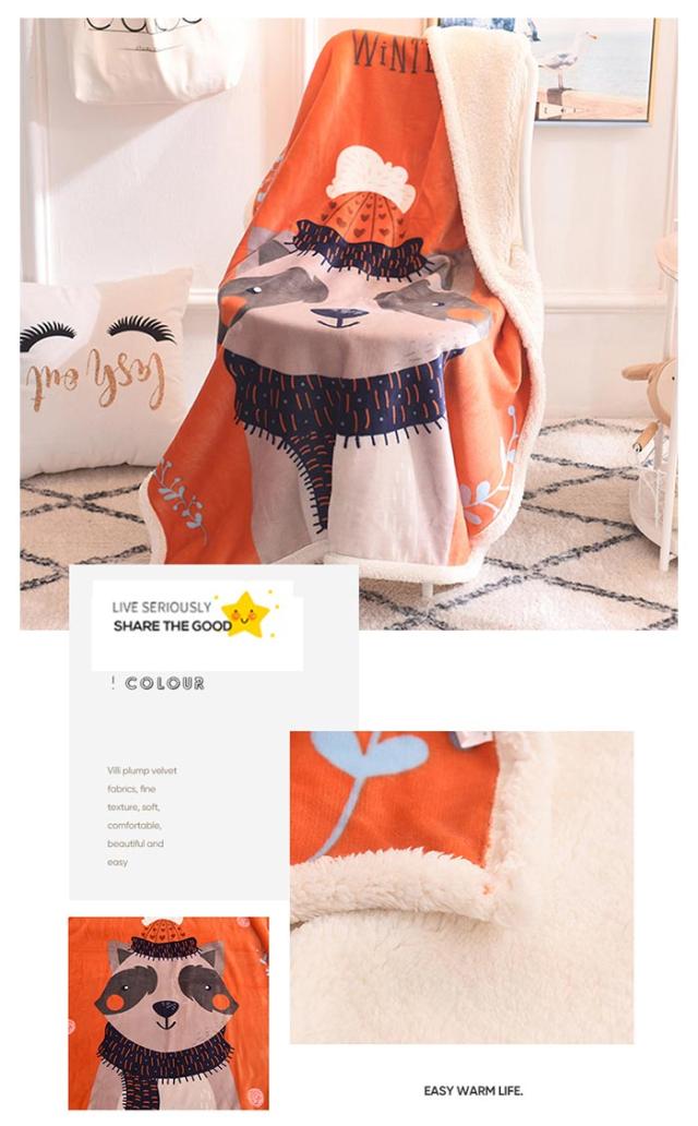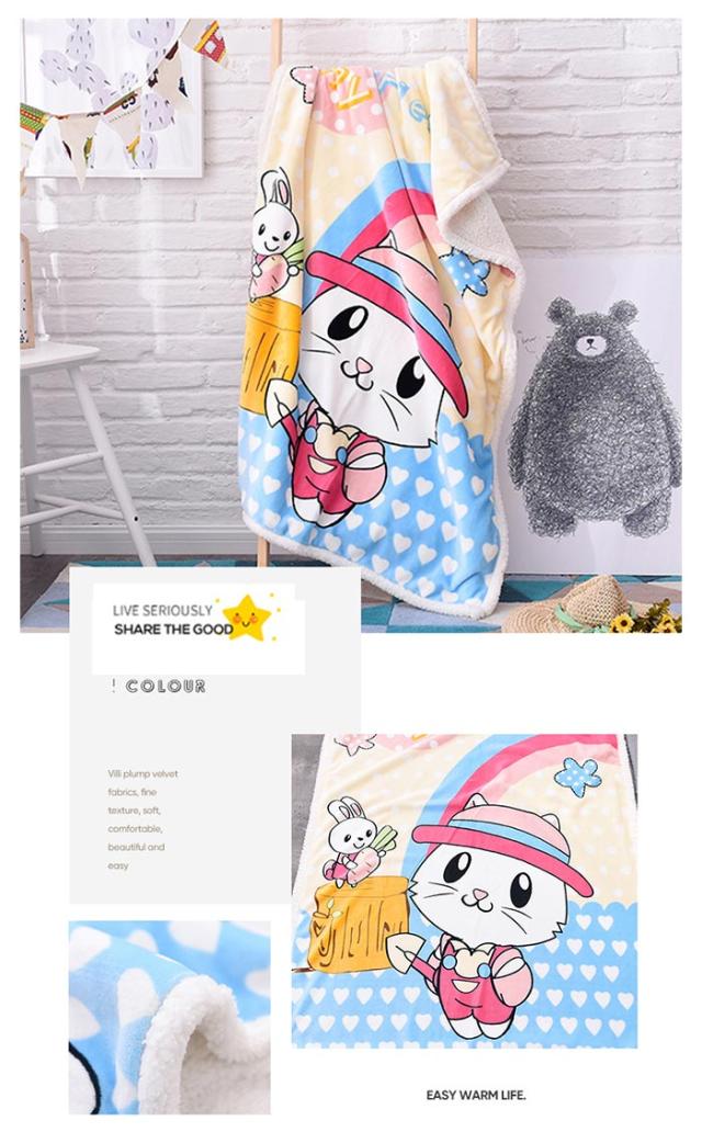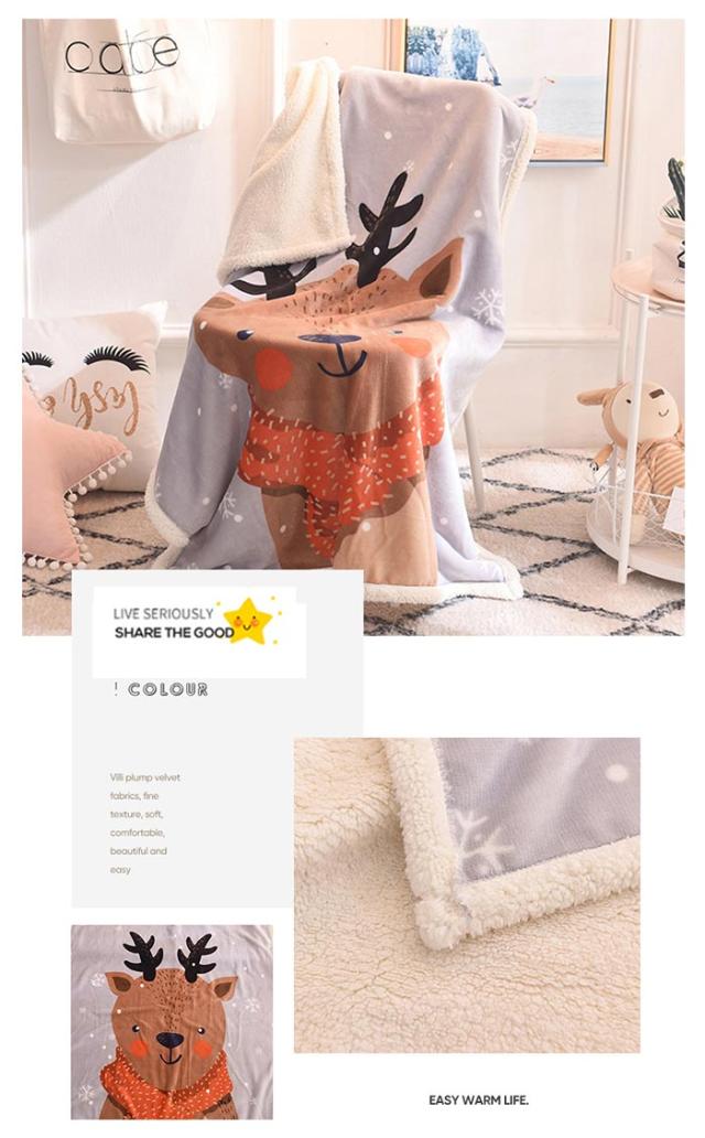 2枚合わせ毛布 ブランケット シープボア 可愛い柄 子供 キッズ 毛布 もこもこ 裏ボア フランネル もうふ あったか 洗える ひざかけ お昼寝ケット ハーフケット 100×140cm 冷房対策 秋 冬