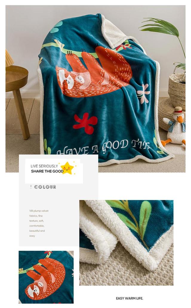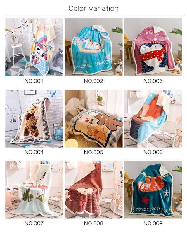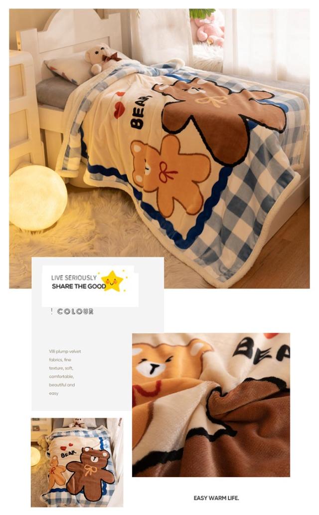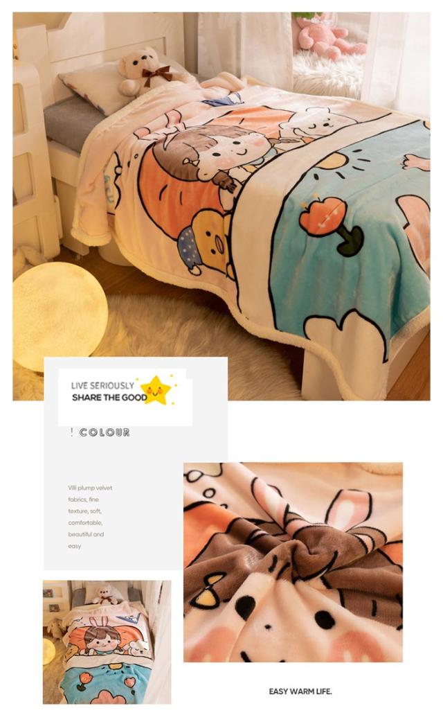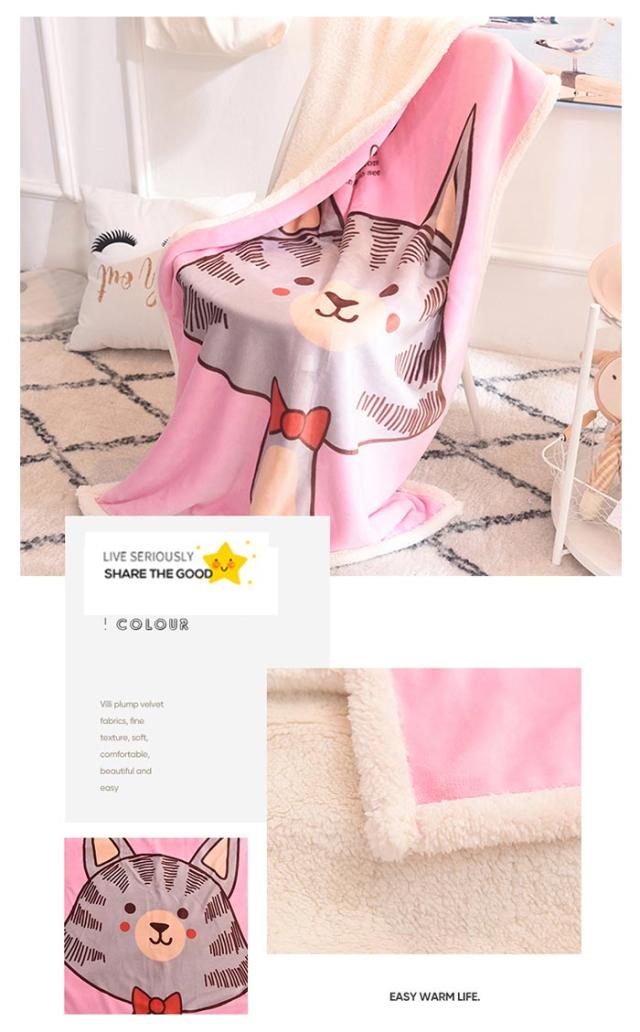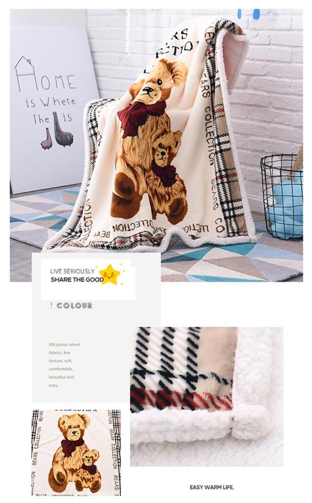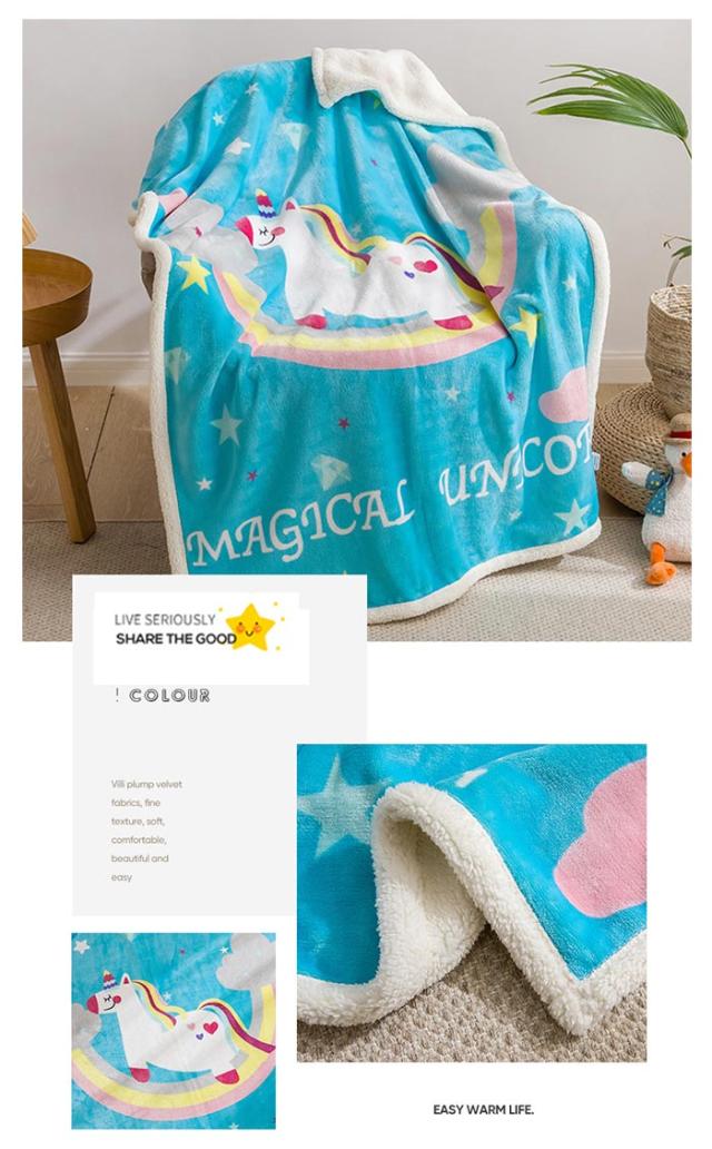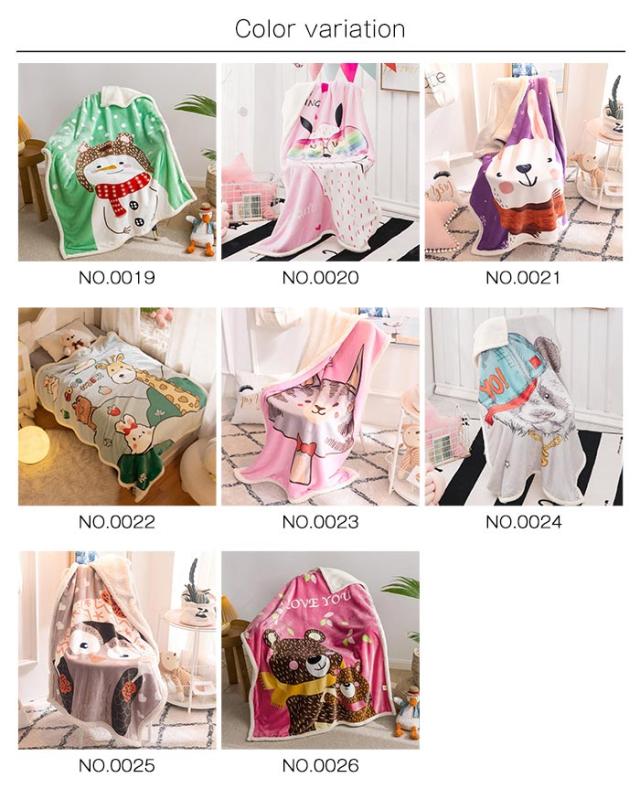 2枚合わせ毛布 ブランケット シープボア 可愛い柄 子供 キッズ 毛布 もこもこ 裏ボア フランネル もうふ あったか 洗える ひざかけ お昼寝ケット ハーフケット 100×140cm 冷房対策 秋 冬