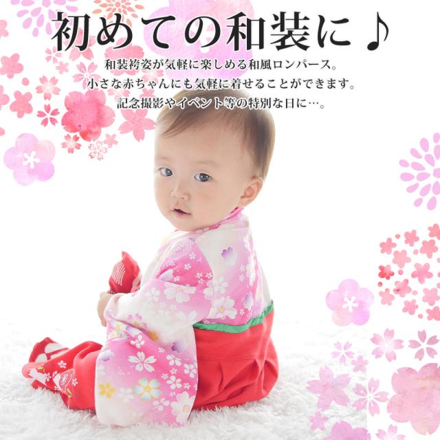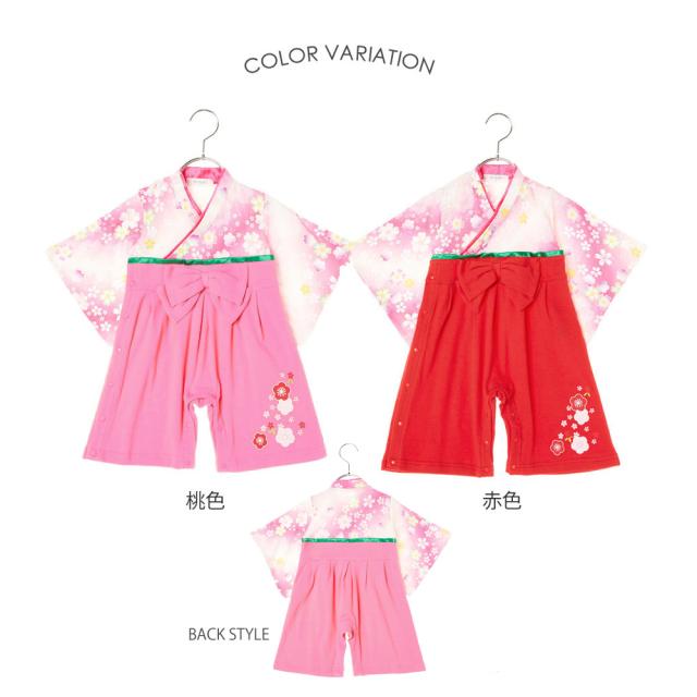 赤ちゃん ベビー 女児 袴ロンパース 全開 梅 桃柄 60-90cm 赤 ピンク 60 70 80 90 ボタン 兼用ドレス 和服 着物 出産祝い 七五三 結婚式 フォーマル ドレスオール 女の子 袴ロンパース お正月 初節句 雛祭り ひな祭り 百日祝いお食い初め 子供服 ベビー服 新生児 服