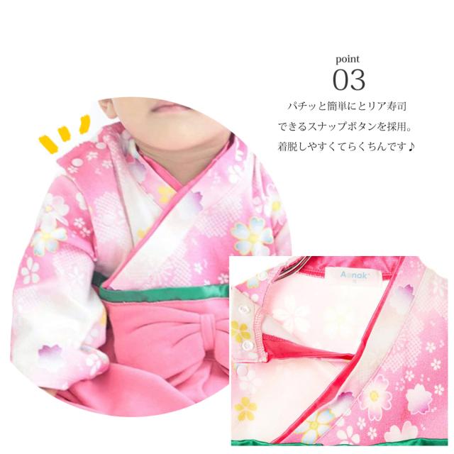 ● お食い初めやお正月、結婚式など記念に残るイベントに♪ ●60/70/80/90cmまでご用意しておりますので様々なイベントにお使い頂けます♪ ●全開気タイプなのでボタンを外すだけでオムツ替えも簡単楽々です♪ ●親子で和装出席もおすすめです♪ |