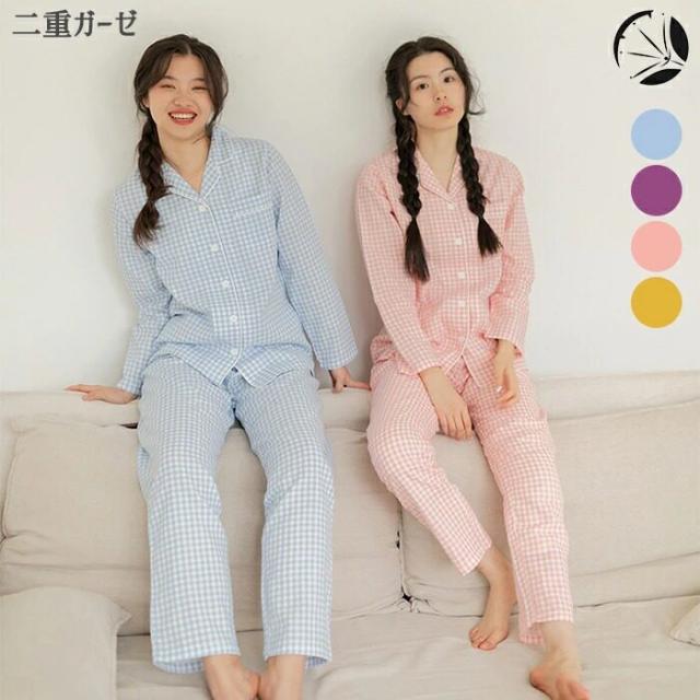 二重ガーゼ パジャマ ルームウエア レディース ガーゼ 綿100% コットン 春 夏 秋 長袖 長ズボン 上下セット 総ゴム ラクチン ナイトウェア 室内 柔らかい 刺激がない 敏感肌 送料無料