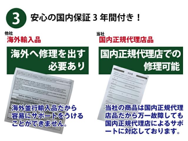 ※デルトラン、スーパーナット製以外の車両ケーブル(SAEプラグ)も使用可能ですが、その場合は「保証対象外」となります。