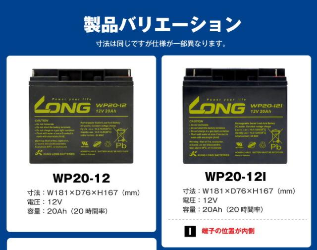 WP20-12IE(産業用鉛蓄電池)【サイクルバッテリー】PE12V17互換【新品】■■LONG【長寿命・保証書付き】UPS 電動車イス 電動バイク 電動ゴルフトロリー など対応