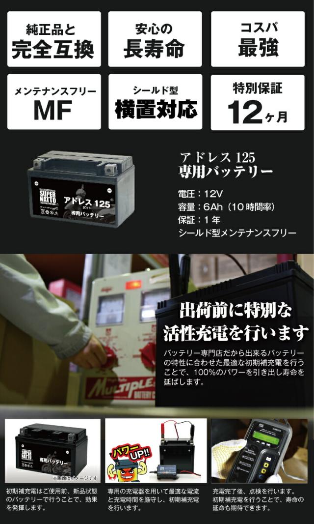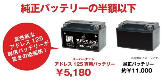 バイク用バッテリー■スズキ アドレス125 (2017年式〜)専用バッテリー SUSUKI ■コスパ最強 総販売数100万個突破 100%交換保証 スーパーナット