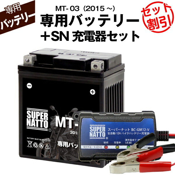 バイク用バッテリー+充電器セット■ヤマハ MT-03 (2015年式〜)専用バッテリー YAMAHA ■スーパーナット充電器■コスパ最強 総販売数100万個突破 100%交換保証 スーパーナット